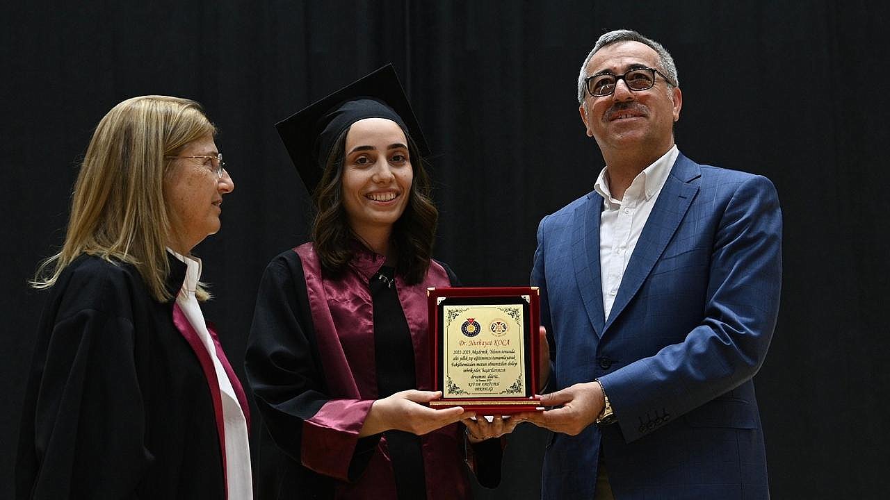 Programda konuşan Büyükşehir Belediye Başkanı Hayrettin Güngör, “Öncelikle genç kardeşlerimizle bir arada olmaktan duyduğum mutluluğu ifade etmek istiyorum. Evlatlarımızın bugünlere gelmesinde emeği geçen rektörümüze, akademisyenlerimize ve öğrencilerimizin kıymetli ailelerine yürekten teşekkür ediyoruz. Bugün mezun olan öğrencilerimiz eğitim açısından çok zor bir dönemden geçtiler. Pandemiyle başladık akabinde büyük bir deprem yaşadık. Bu iki zorlu süreçte de sağlıkçılarımız çok büyük fedakârlık yaptı. Hamdolsun büyük bir başarı gösterdiler. Bugün mezun olan tüm doktorlarımızı tebrik ediyor, hayatlarında başarılar diliyorum” dedi. Konuşmaların ardından Başkan Güngör ve Rektör Yasım, dereceye giren öğrencilere belge ve ödüllerini takdim etti.