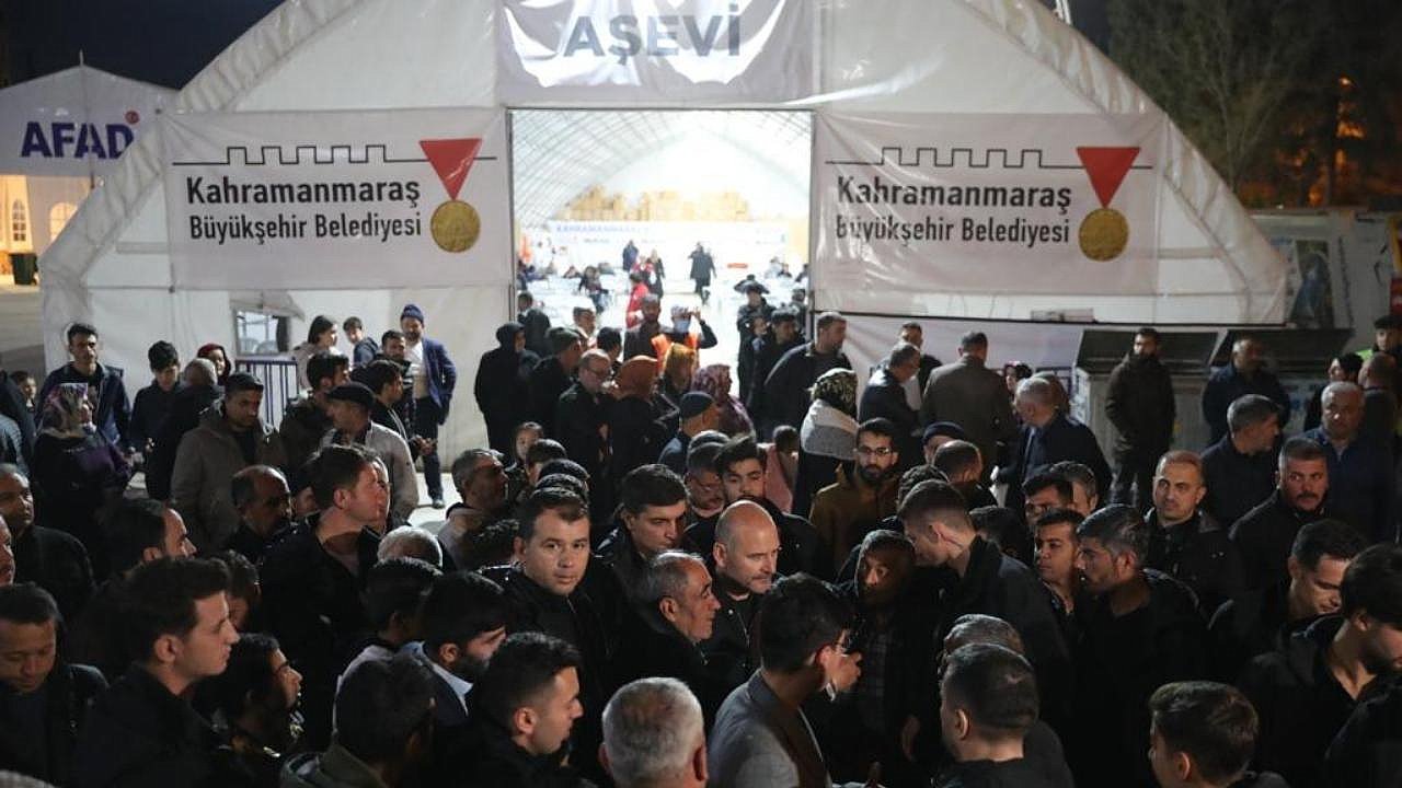 Kahramanmaraş Büyükşehir Belediye Başkanı Hayrettin Güngör, depremin ilk saatlerinden itibaren Kahramanmaraş’ta olan ve çalışmaları koordine eden İçişleri Bakanı Süleyman Soylu ile birlikte Büyükşehir Belediyesi’nin Milli İrade Meydanı’ndaki aşevinde vatandaşlarla bir araya gelerek iftar yaptı. Kahramanmaraş Valisi Ömer Faruk Coşkun ve koordinatör valilerin de yer aldığı iftar programında Başkan Güngör ve Bakan Soylu, vatandaşlarla sohbet ederek taleplerini de dinledi. Vatandaşların Ramazan ayını da tebrik eden Başkan Güngör, “Ramazan ayımızda iftar sofralarının bereketini hep birlikte yaşamak için her gün iftarda hemşehrilerimizle bir araya geliyoruz. Bugünkü iftarımızı da İçişleri Bakanımız Sayın Süleyman Soylu ile Büyükşehir Belediyemizin iftar çadırında hemşehrilerimizle yaptık. Rabbim oruçlarımızı kabul, birlik ve beraberliğimizi daim eylesin. Depremin ilk saatlerinden itibaren şehrimizi yalnız bırakmayan Sayın Bakanımıza müteşekkiriz” dedi.