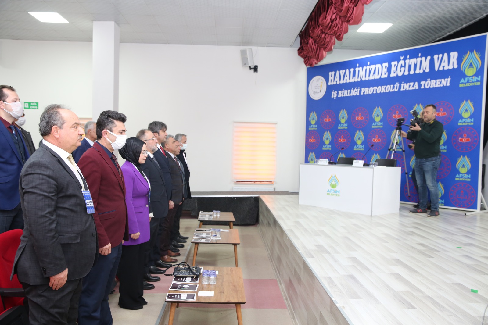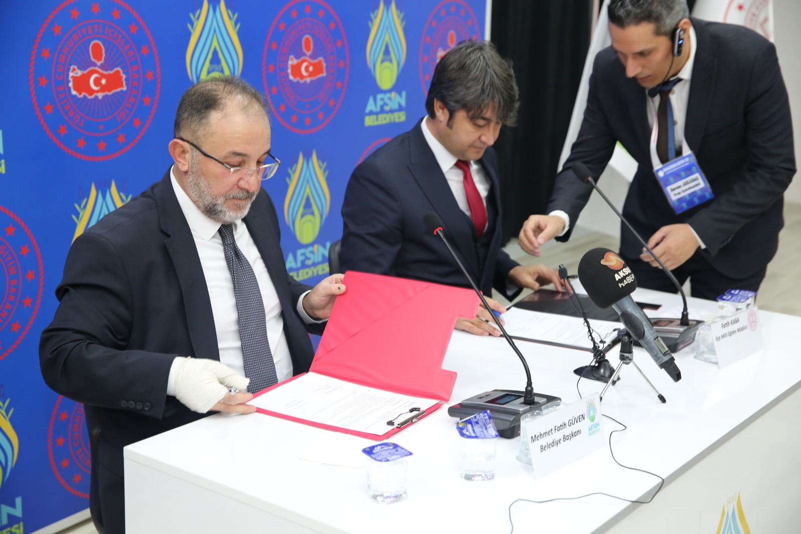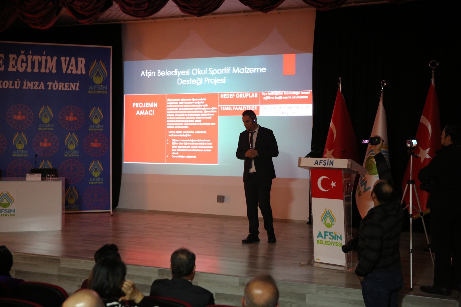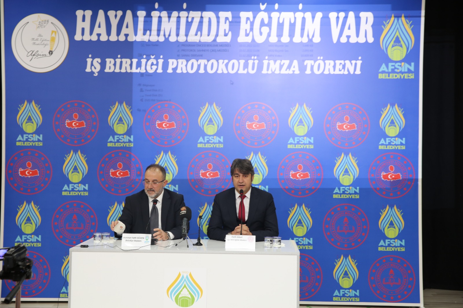 Afşin Belediyesi Sebahattin Atalay Kültür Merkezinde düzenlenen törende, eğitim ve öğretimin kalitesini artırmak, öğrencilerin sosyal, kültürel ve akademik yönde desteklemek, eğitim hizmet kalitesini geliştirmek ve yaygınlaştırmak amacıyla gerçekleştirilen işbirliği protokolüne, Afşin Belediye Başkanı Mehmet Fatih Güven ile Afşin İlçe Milli Eğitim Müdürü Fatih Kaba imza attı.