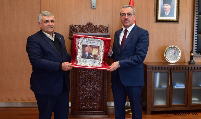Kahramanmaraş Büyükşehir Belediye Başkanı Hayrettin Güngör’ün makamında gerçekleşen ziyarette Kahramanmaraş Damızlık Koyun Keçi Yetiştiricileri Birliği Başkanı Vakkas Kuzu Başkan Güngör’e teşekkür plaketi takdim etti.