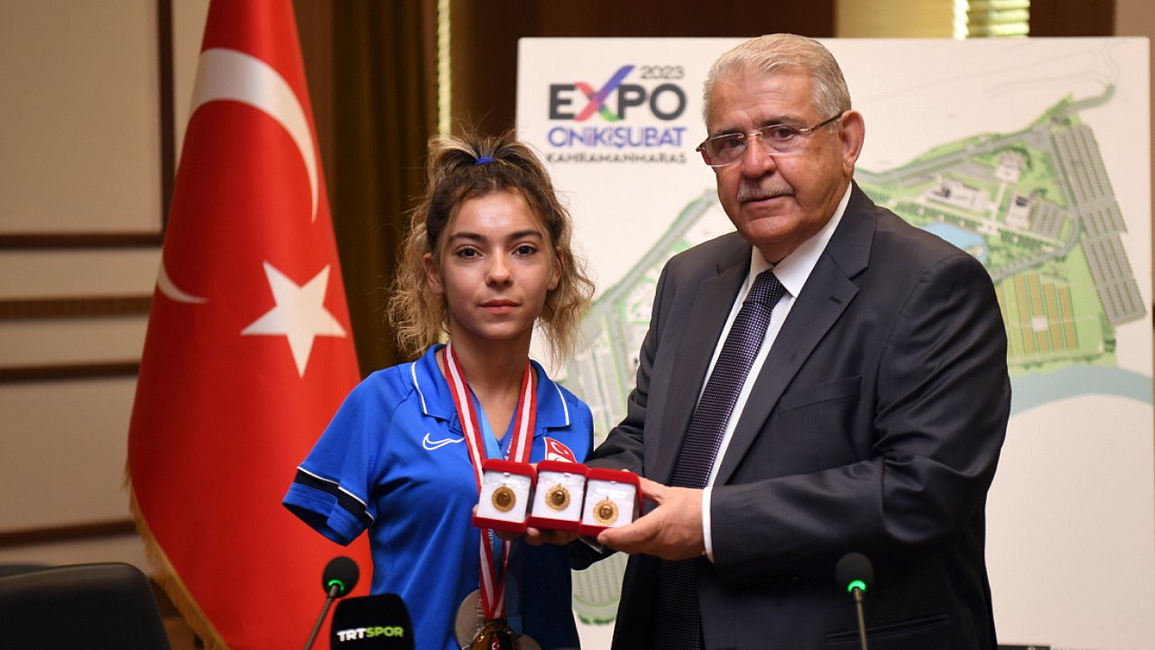 Başkan Mahçiçek, ziyaret sonrası Sevilay Öztürk’e 3 adet tam altın ile Onikişubat Belediyesi madalyası takdim etti.