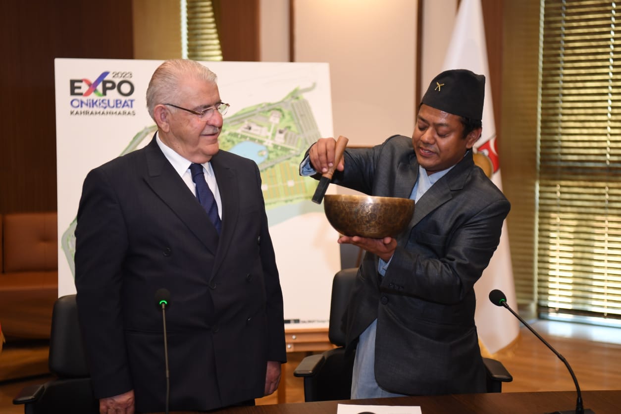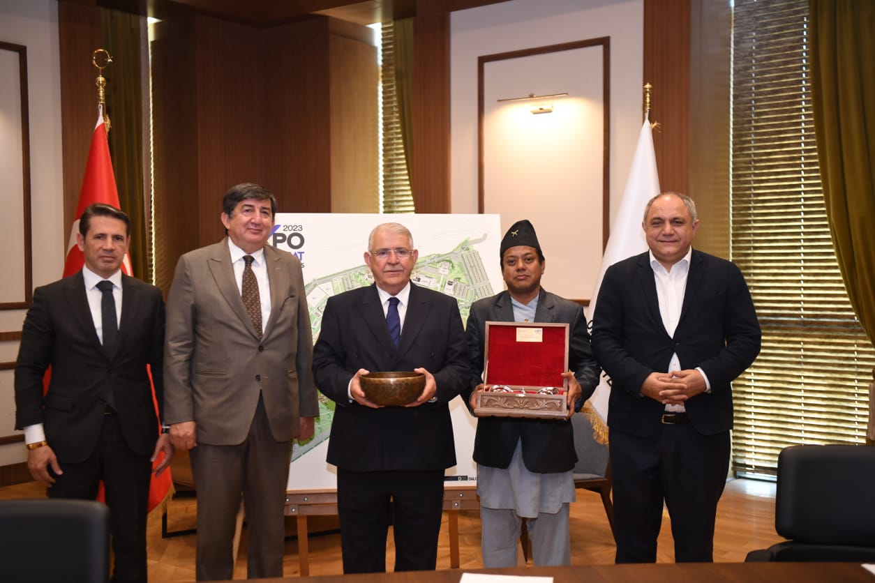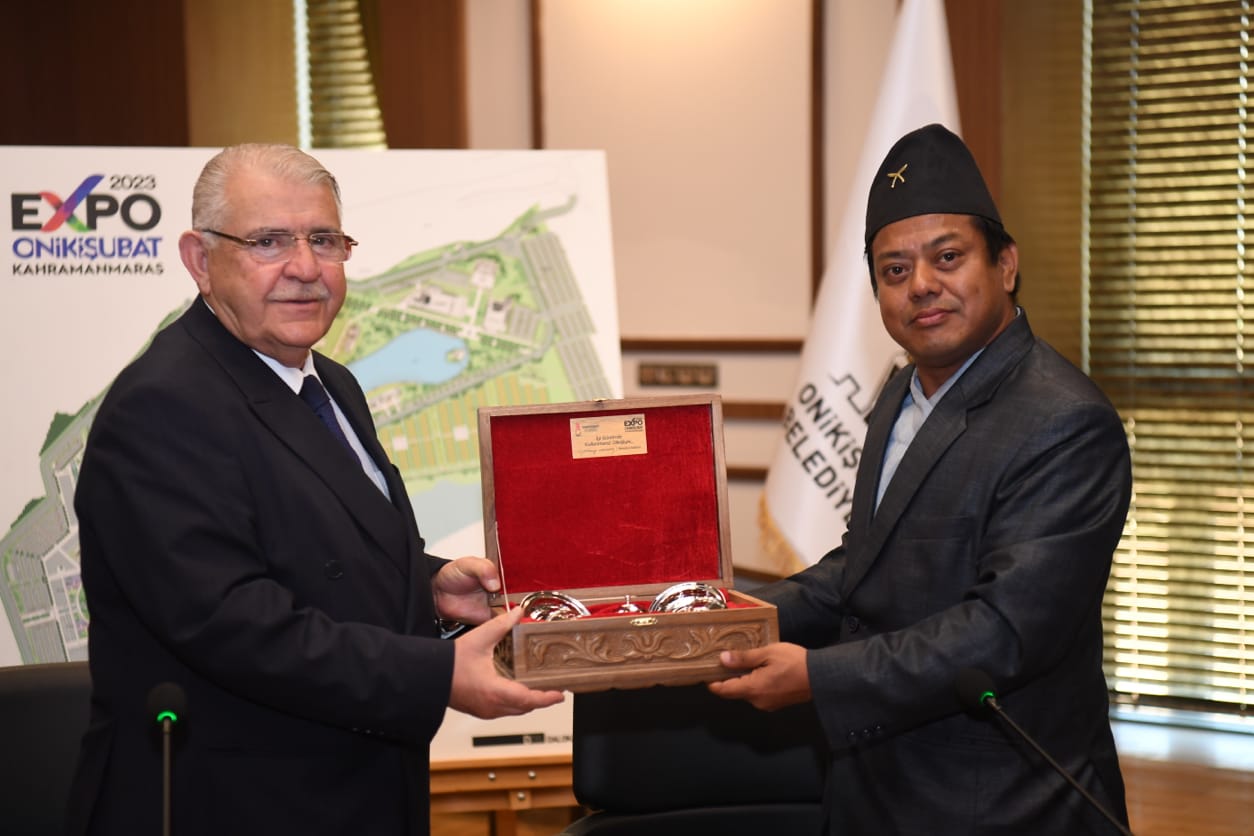 EXPO 2023’e devletler bazında son başvuru ise Nepal Federal Demokratik Cumhuriyeti’nden geldi.Onikişubat Belediye Başkanı Hanefi Mahçiçek,EXPO 2023’e resmi katılım başvurusu yapmak ve görüşmelerde bulunmak üzere Kahramanmaraş’a gelen Nepal Genel Komiseri Brendra Bajracharya’yı makamında kabul etti. EXPO 2023 hakkında Brendra Bajracharya’ya detaylı bilgiler veren Başkan Mahçiçek, sonrasında ise EXPO 2023 Rekreasyon Alanı’nı gezdirdi. Brendra Bajracharya burada Başkan Mahçiçek’i tebrik ederken, alandaki çalışmalardan etkilendiğini söyledi.