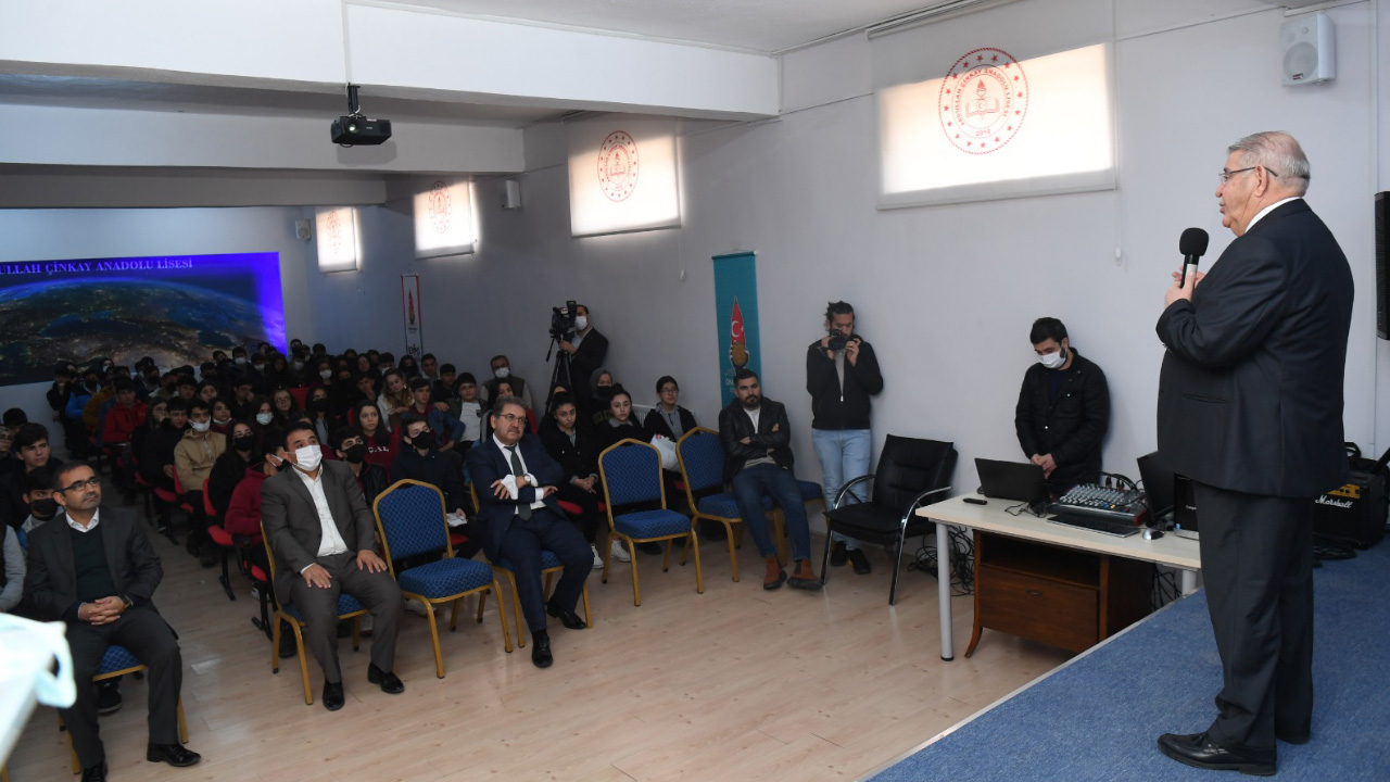 Kariyer Günleri programı çerçevesinde öğrencilerle bir araya gelerek hem tecrübelerini aktaran hem de EXPO 2023 Projesi’ni anlatan Onikişubat Belediye Başkanı Hanefi Mahçiçek, son olarak ise Özel Mesa Koleji ve Abdullah Çinkay Anadolu Lisesi öğrencileriyle buluştu. Program, EXPO 2023 tanıtım filminin izlenmesiyle başlarken, proje öğrencilerin büyük beğenisini kazandı.