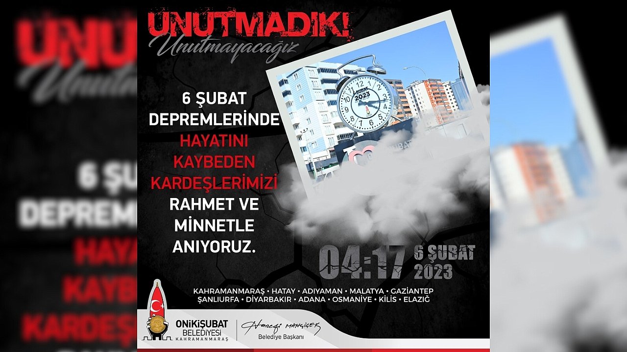 Onikişubat Belediye Başkanı Hanefi Mahçiçek, geçtiğimiz yıl 6 Şubat’ta meydana gelen ve 11 ilde yıkıma neden olan Kahramanmaraş depremlerinin yıl dönümü dolayısıyla anma mesajı yayımladı.