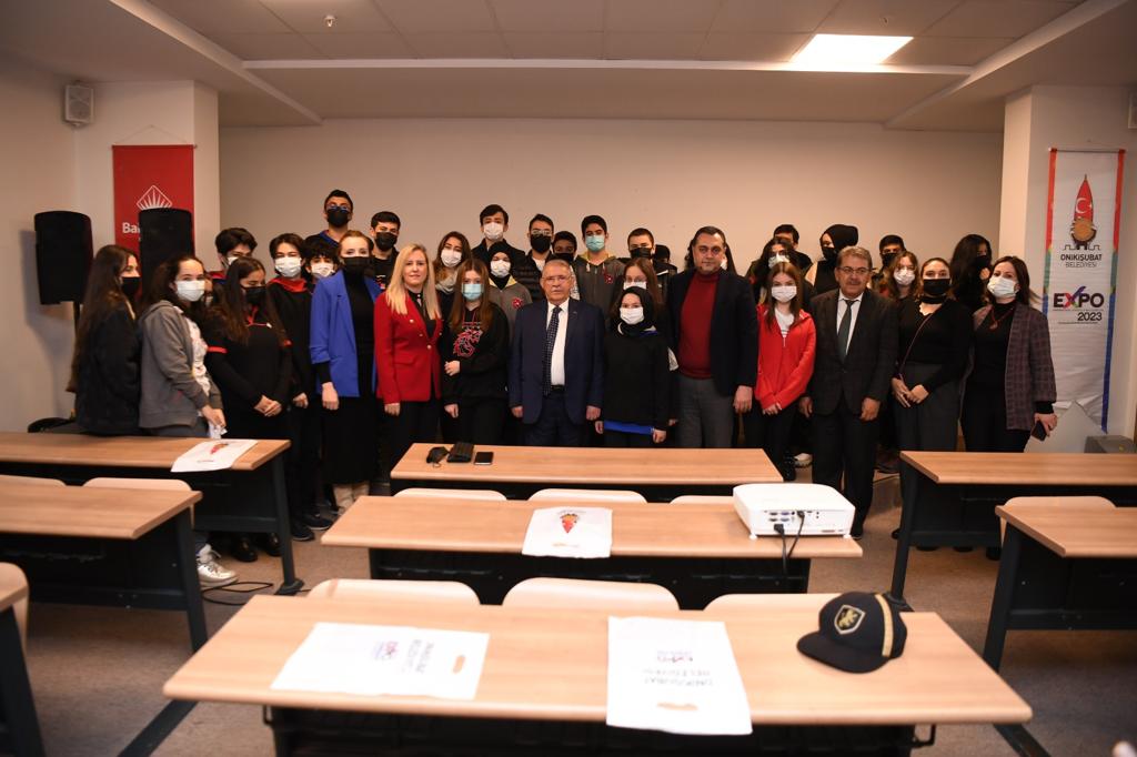 Maarif Anadolu Lisesi ve Bahçeşehir Koleji öğrencileriyle buluşan Başkan Mahçiçek, EXPO 2023’ün nasıl yapılacağını, içinde neler olduğunu, şehrimize neler katacağını ve şehrimizin nasıl marka değeri kazanacağını anlattı.