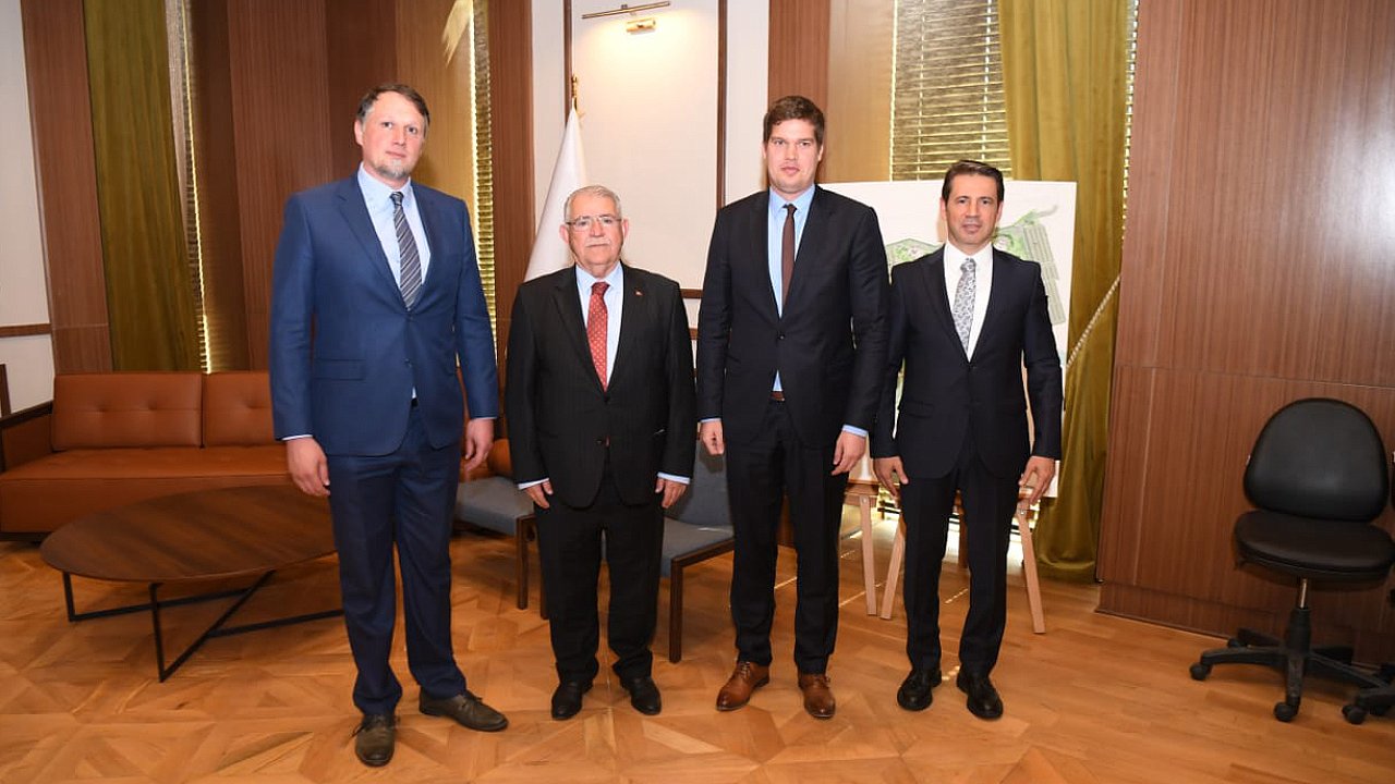 Onikişubat Belediye Başkanı Hanefi Mahçiçek’in başarılı çalışmaları sonucu kente kazandırılan ve vizyon projelerinden biri olan Uluslararası EXPO 2023, ulusal anlamda devletlerden, yerel anlamda ise belediyeler ve kurumlardan büyük ilgi görüyor. Açılışına bir yıl gibi süre olmasına rağmen şu ana kadar 25 ülkenin katılmak için başvuru yaptığı EXPO 2023, tarihten gelen bağ ve kültürel yakınlığıyla bilinen dost ülke Macaristan’ın da dikkatini çekti. Uluslararası EXPO 2023 Projesi’ni yakından görmek ve bilgi almak için Kahramanmaraş’a gelen Macaristan Büyükelçiliği Ticaret Ataşeleri AronSipos ve Peter KövecsiOlah, Başkan Mahçiçek’i makamında ziyaret etti. Misafirlerine ilk olarak belediye hizmet binasını gezdirerek Kahramanmaraş ve Onikişubat hakkında bilgiler veren Başkan Mahçiçek, sonrasında ise tanıtım filmi eşliğinde EXPO 2023’ü anlattı. EXPO 2023’ten çok etkilendiklerini belirten Sipos ve Olah, EXPO 2023 ileiki ülke sanayicileri ve işinsanları arasında ekonomik ve kültürel işbirliğinin artacağına inandıklarını söyledi.