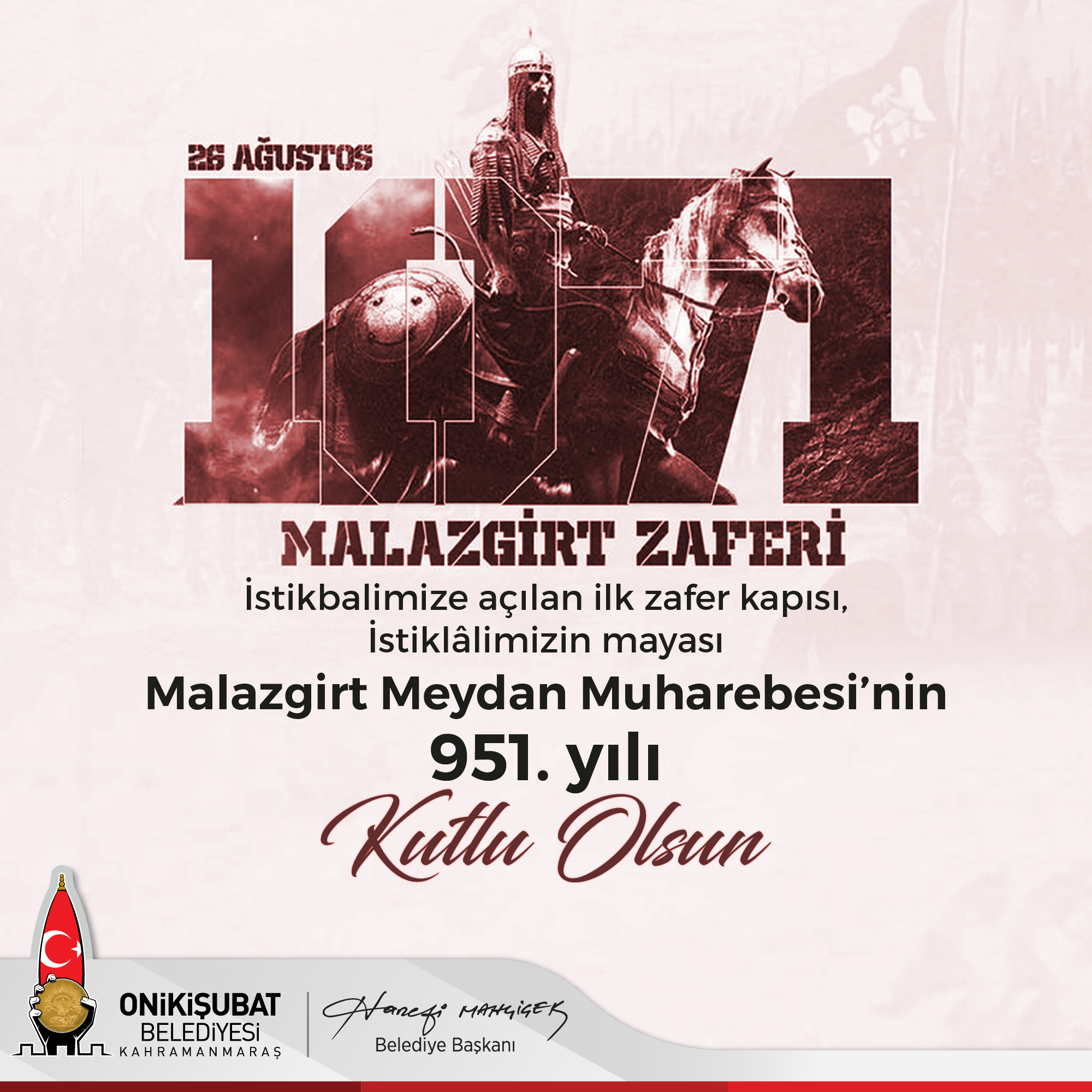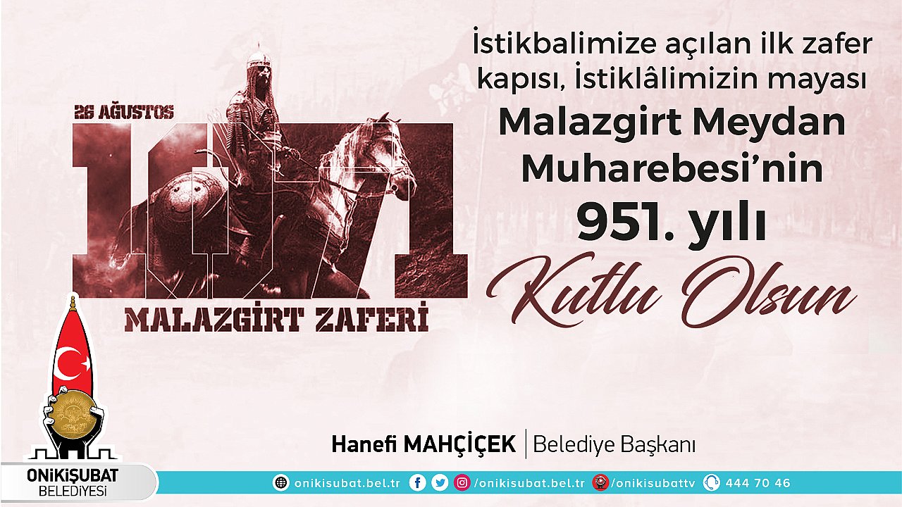 Onikişubat Belediye Başkanı Hanefi Mahçiçek, Malazgirt Zaferi’nin 951’inci yıl dönümü dolayısıyla mesaj yayımladı.