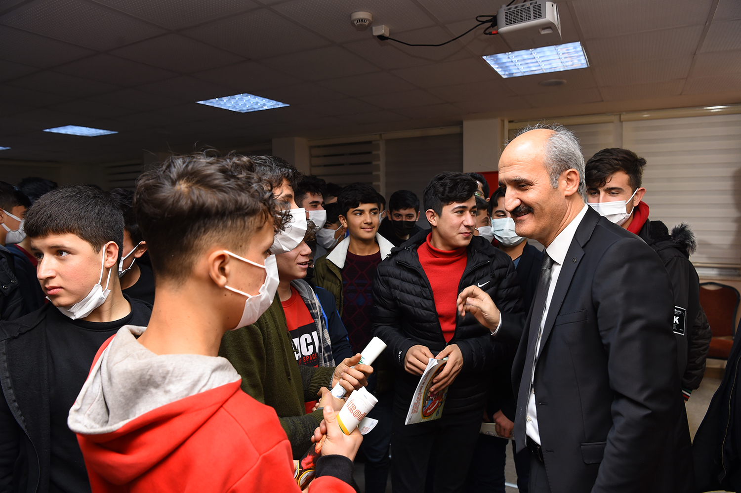 Okul pansiyonunda kalan öğrencilerle sohbet eden Başkan Okay, öğrencilere hedefleri ve hayallerini sordu. Gençleri geleceğin teminatı olarak gördüklerini söyleyen Başkan Okay, “Sizlerin hayalleri ve hedefleri bizim geleceğimizdir. Bu nedenle hedefiniz en iyisi, hayaliniz en büyüğü olsun” dedi.