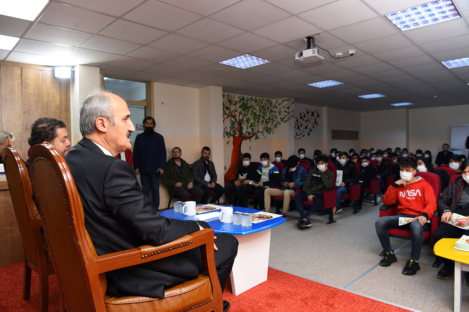 Başkan Okay’ın konuşmasının ardından öğrenciler merak ettikleri konular ile ilgili soru sordu. Soru ve cevapların ardından hatıra fotoğrafı çektirildi.