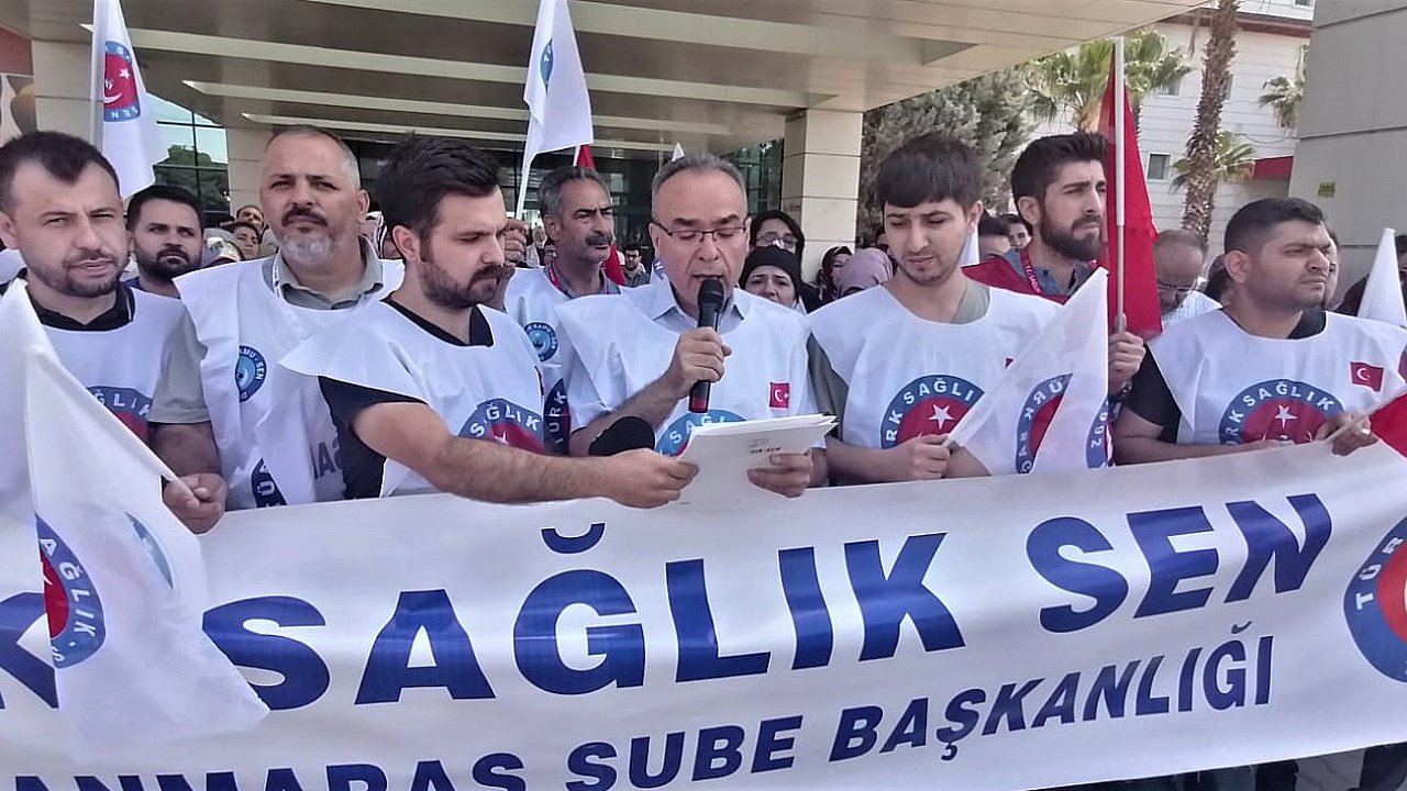 Kahramanmaraş Necip Fazıl Şehir Hastanesi önünde yapılan toplantıda sendika üyeleriyle bir araya gelen Türk Sağlık-Sen Kahramanmaraş Şube Başkanı Mehmet Özer, “Dün Konya’da canice bir saldırı yapılmış, Konya Şehir Hastanesi’nde görevli Uzman Dr. Ekrem Karakaya görevi başında uğradığı silahlı saldırı sonucu hayatını kaybetmiştir. Şehit doktorumuzun acısı yüreğimizi yakmış, tüm sağlık camiasını derinden yaralamıştır. Böylesine korkunç olayların yaşanması yaptırımların ne kadar ağır olması gerektiğini, tedbirlerin en üst seviyede alınması gerektiğini göstermektedir. Sağlıkta şiddete cezayı arttıran ve bu suçu kategorik bir suç olarak tanımlayan düzenleme hayata geçmiştir. Sağlıkta şiddetin kanlı bir vahşet olarak kendini gösterdiği bu olay tüm sağlık kurum ve kuruluşları bir an önce sıfır toleranslı alan ilan edilmesi gerekliliğini, hiçbir silah veya suç aletinin bu kurumların bahçelerine bile alınmaması gerektiğini bizlere bir kez daha göstermektedir. Hastanede bir doktorumuzun silahla katlediliyorsa atılması gereken çok adım vardır. Hastanelere üst araması yapılmadan kimsenin alınmaması bile düşünülmelidir. Can güvenliğinden yoksun bir şekilde sağlık hizmetlerinin yürütülemeyeceği açıktır. Sağlık çalışanları şiddet sarmalından bir an önce kurtarılmalıdır. Hastaları hayata tutunmaya çalışırken kendi hayatını kaybetme endişesi yaşamalarına sağlık çalışanlarının artık tahammül edecek sabrı kalmamıştır. Bu nedenle bir kez daha vurguluyoruz. Sağlıkta şiddet basit bir mesele değildir. Mutlaka çözüm üretilmesi gereken temel bir sorundur. Şiddet kanlı cinayetlere dönüşmektedir. Bu mesele sadece sağlık camiasının değil tüm Türkiye’nin meselesidir. Bu cinayet, bu katliam sözün bittiği bir yerdir. Herkes şapkasını önüne koymalı ve gereği için üstüne düşeni yapmalıdır. Sözlerime son verirken merhum doktorumuza Allah’tan rahmet, acılı ailesi, yakınları ve tüm sağlık camiasına sabırlar diliyoruz. Hepimizin başı sağ olsun” dedi.