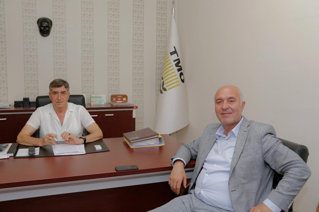 AK Parti Elbistan İlçe Başkanı Ahmet Tıraş, Toprak Mahsulleri Ofisi (TMO) Elbistan Müdürü Talat Ötkün’ü ziyaret ederek çalışmalar hakkında görüş alışverişinde bulundu.
