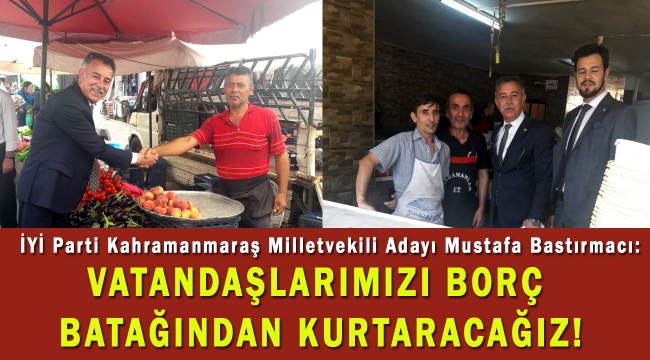 Seçim çalışmaları kapsamında Kahramanmaraş merkezde esnaf ziyaretlerini yoğunlaştıran İYİ Parti Kahramanmaraş Milletvekili Adayı Mustafa Bastırmacı, zor şartlarda yaşam mücadelesi veren düşük gelirli vatandaşları borç batağından ve icra takibinden kurtaracaklarını söyledi.