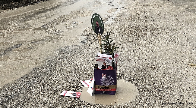 Mahallelerinde toplanan bir grup vatandaş, yollardaki çukurlarınyapılmamasına tepki göstermek için yanlarında çiçek ve fidan getirdi.