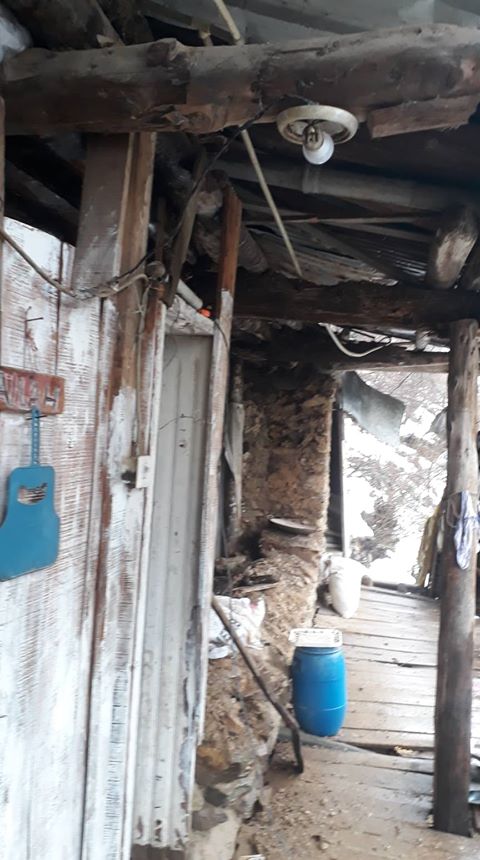 Yağmur, fırtına ve kar yağışı gibi doğa olaylarından etkilenen harabe evin bir gün yıkılacağı korkusuyla eşi ve torunuyla yaşam mücadelesi veren Durdu Bulduk’un tek geçim kaynağı ise 65 aylığı.