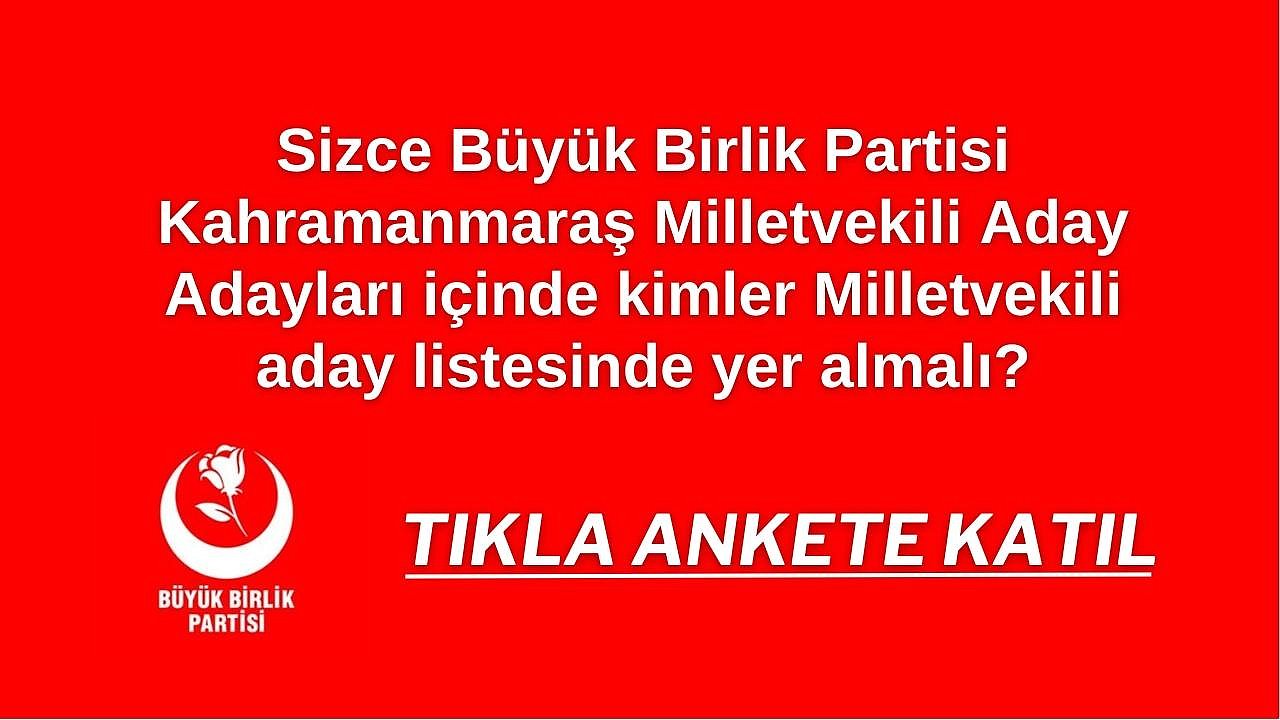 Sizce Büyük Birlik Partisi Kahramanmaraş Milletvekili Aday Adayları içinde kimler Milletvekili aday listesinde yer almalı?