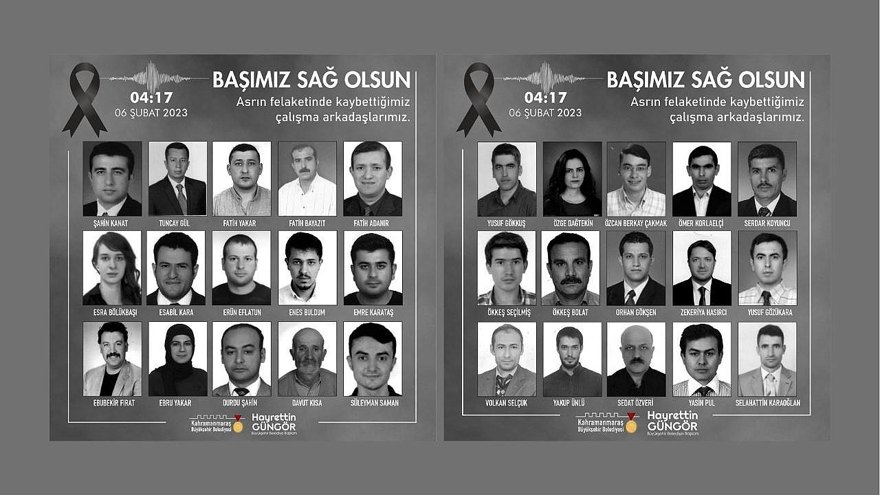 Başkan Güngör, “6 Şubat tarihinde meydana gelen depremlerde çok sayıda vatandaşımızı hakkın rahmetine uğurladık, yaralılarımız var. Bu büyük felakette Büyükşehir Belediyesi ve KASKİ olarak 73 personelimizi kaybettik. Başımız sağ olsun” dedi.Kahramanmaraş Büyükşehir Belediye Başkanı Hayrettin Güngör, 6 Şubat’ta Pazarcık ve Elbistan’da meydana gelen ve çevre illerde de büyük yıkıma neden olan depremlerde Büyükşehir Belediyesi ve KASKİ personellerinden 73 kişinin vefat ettiğini açıkladı. Başkan Güngör, “6 Şubat tarihinde meydana gelen depremlerde çok sayıda vatandaşımızı hakkın rahmetine uğurladık, yaralılarımız var. Bu büyük felakette Büyükşehir Belediyesi ve KASKİ olarak 73 personelimizi kaybettik. Onlar Kahramanmaraş’ımız için gece gündüz hizmet ettiler. Bizler de onları her zaman hayırla yad edeceğiz. Bu elim afette hayatını kaybeden kardeşlerimize Allah’tan rahmet, ailelerine baş sağlığı, yaralılarımıza da acil şifalar diliyoruz. Başımız sağ olsun” ifadelerine yer verdi.