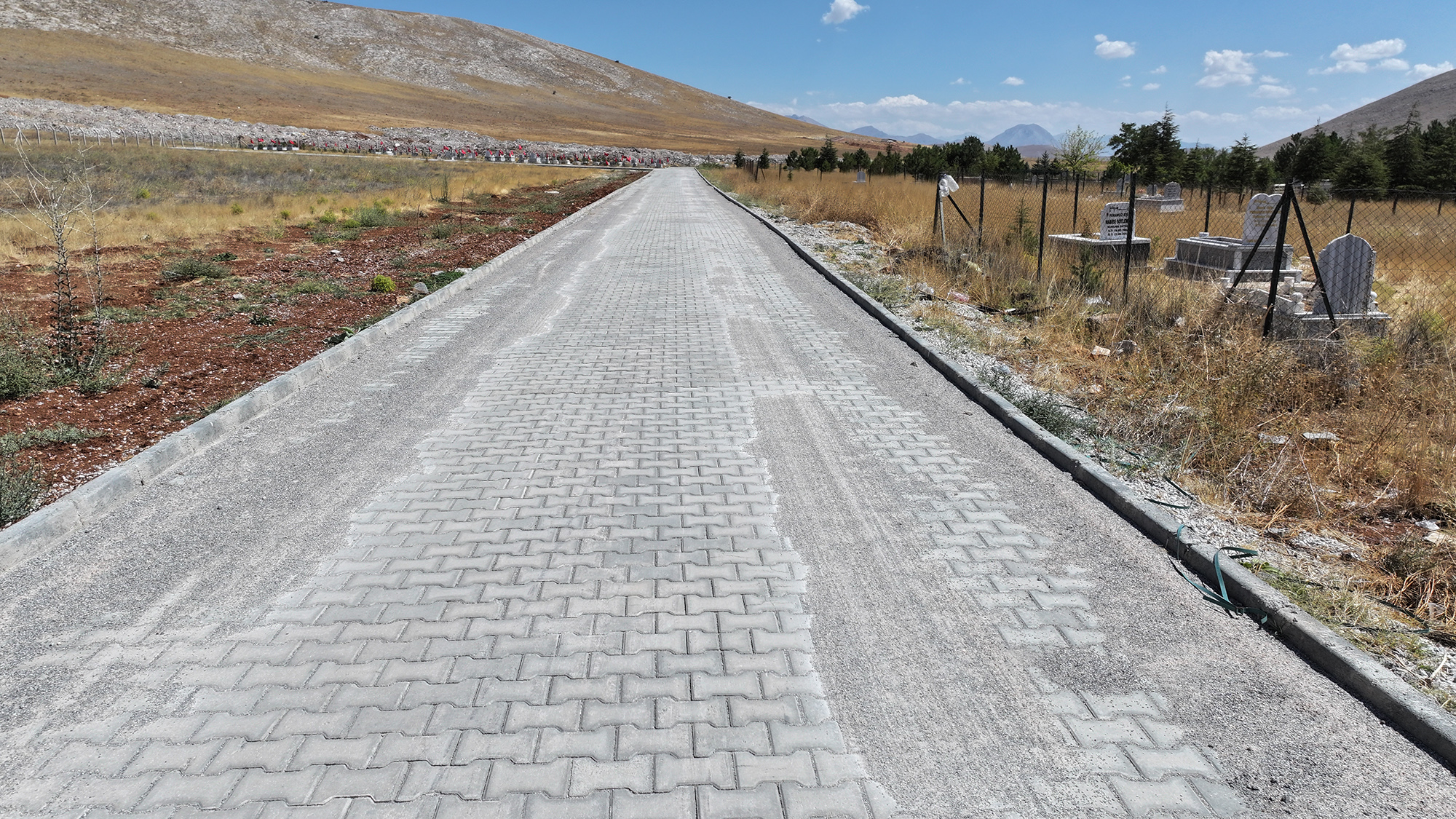 Mezarlık içerisindeki yollar, stabilize olmasından dolayı özellikle yağışlı havalarda sorun yaratıyordu. Bu sorunu çözmek için Belediye, 5 bin metrekarelik kilit parke döşeme çalışmasını tamamladı.