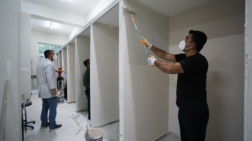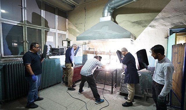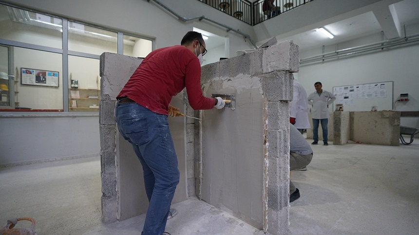 İnşaat sektöründe uzmanlaşmayı hedefleyen kursiyerler, çeşitli atölyelerde uygulamalı eğitimler alarak becerilerini artırıyor.