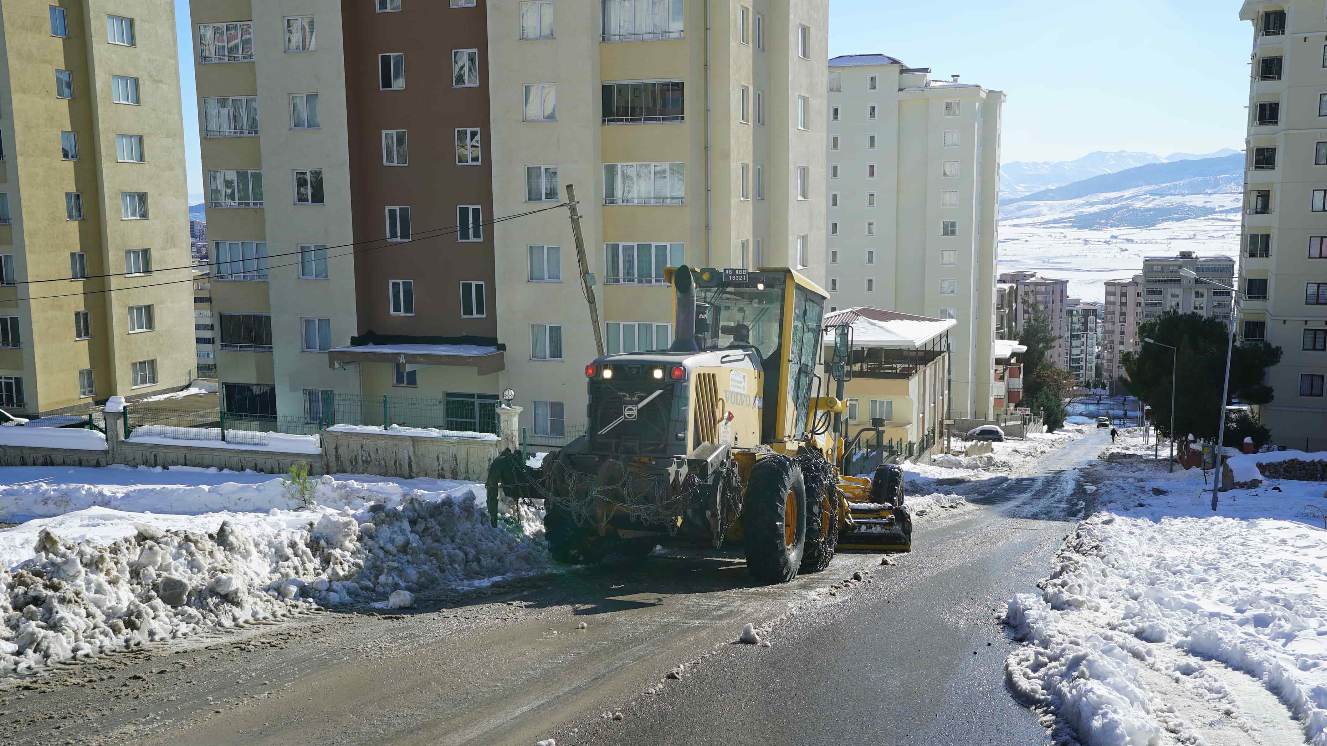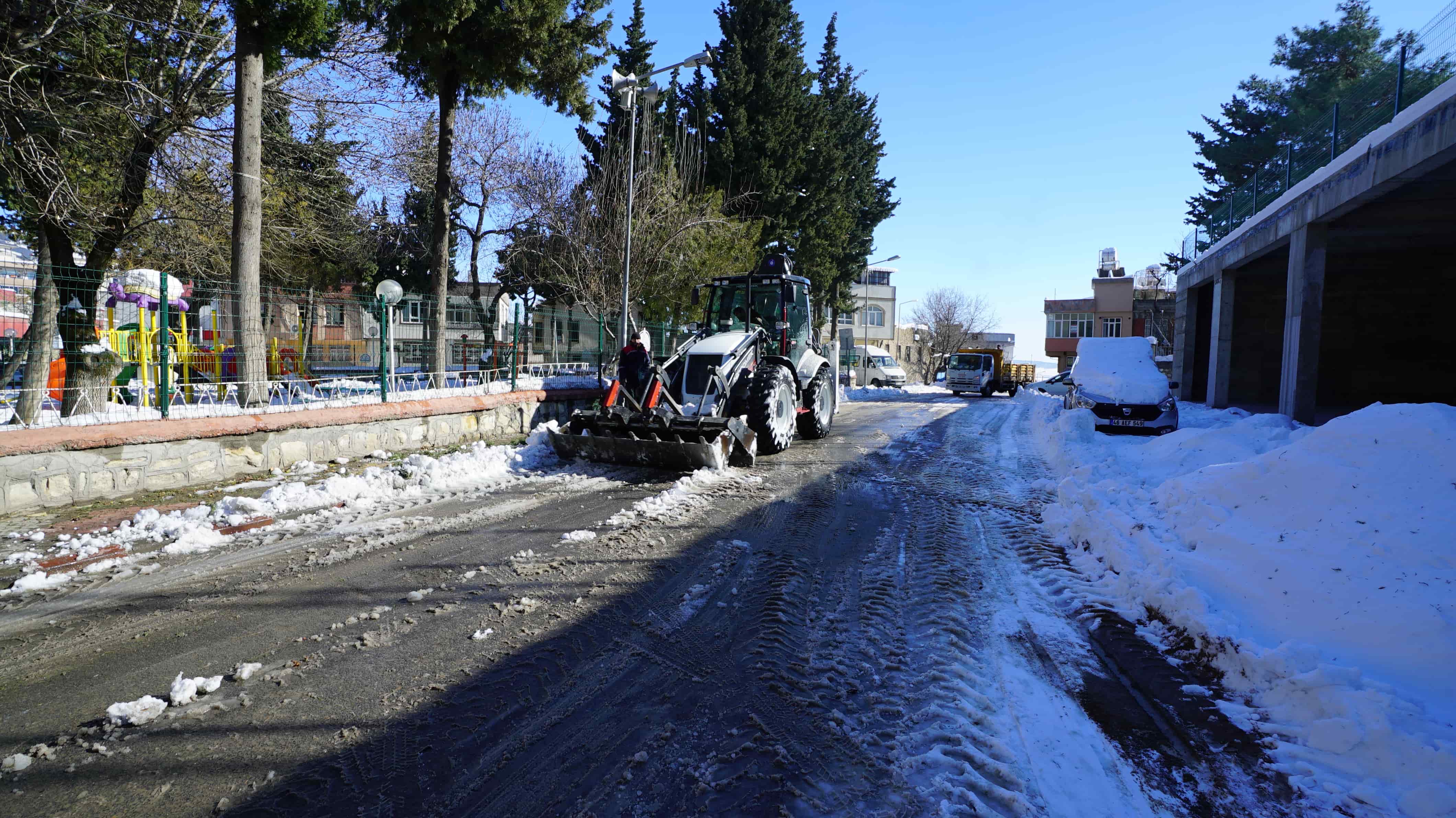 Kahramanmaraş Büyükşehir Belediyesi, kış şartlarıyla mücadele çalışmalarını aralıksız sürdürüyor. Büyükşehir sorumluluk sahası içinde bulunan ana cadde, bulvar ve kavşaklar dün itibariyle tamamen ulaşıma açılırken, ekipler ilçelerin ara sokak ve tali yollarında uygulama gerçekleştiriyor. Kentin 11 ilçesinde eşzamanlı olarak gerçekleştirilen uygulamalarda, 210 iş makinesi ve 400’ün üzerinde personel aktif görev alırken; merkez ilçeler Dulkadiroğlu ve Onikişubat’ta yoğun nüfuslu mahallelerin ara sokakları da temizlendi.