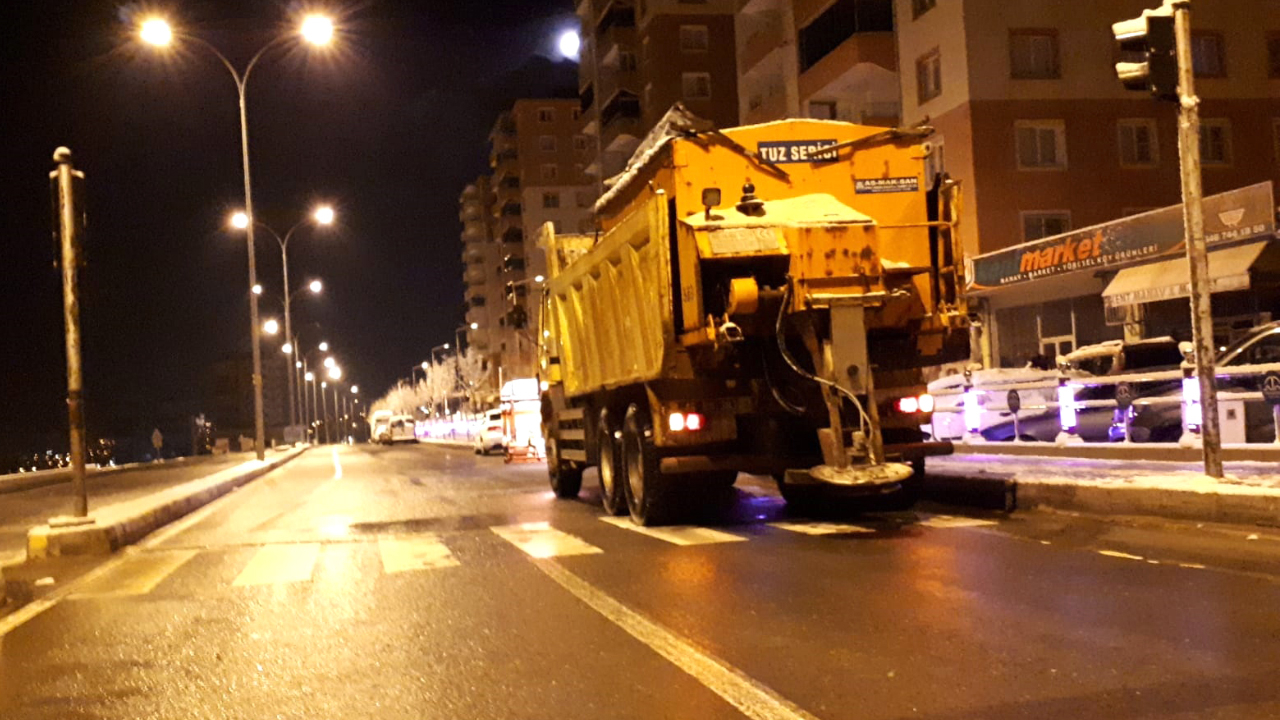 Fen İşleri Dairesi Başkanlığı’ndan çalışmalara ilişkin yapılan açıklamada, “Şehir genelinde etkili olan kış şartlarıyla mücadele kapsamında tüm araç ve personelimizle gece gündüz demeden sahadayız. Hava sıcaklıklarının eksi değerlere düşmesi sonucu meydana gelebilecek buzlanma ve don olaylarına mahal vermemek için şehrin muhtelif yerlerinde tuzlama ve solüsyon uygulamalarımızı sürdürüyoruz. Yaya ve araç trafiğinde oluşabilecek aksamaların önüne geçerek ulaşımda güvenliği sağlamak için çalışmalarımız aralıksız devam edecek” ifadelerine yer verildi.