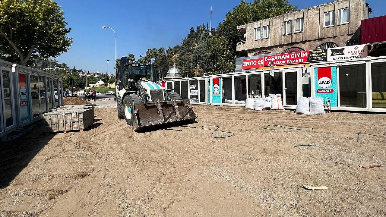 Büyükşehir Belediyesi, Kanlıdere Caddesi’nde oluşturulan Geçici Esnaf Çarşısı’nda üstyapı imalatlarını sürdürüyor. Geçici iş yerlerinin önü kilit parkeyle kaplanırken bölgeye yeni yürüyüş yolları da kazandırılıyor.