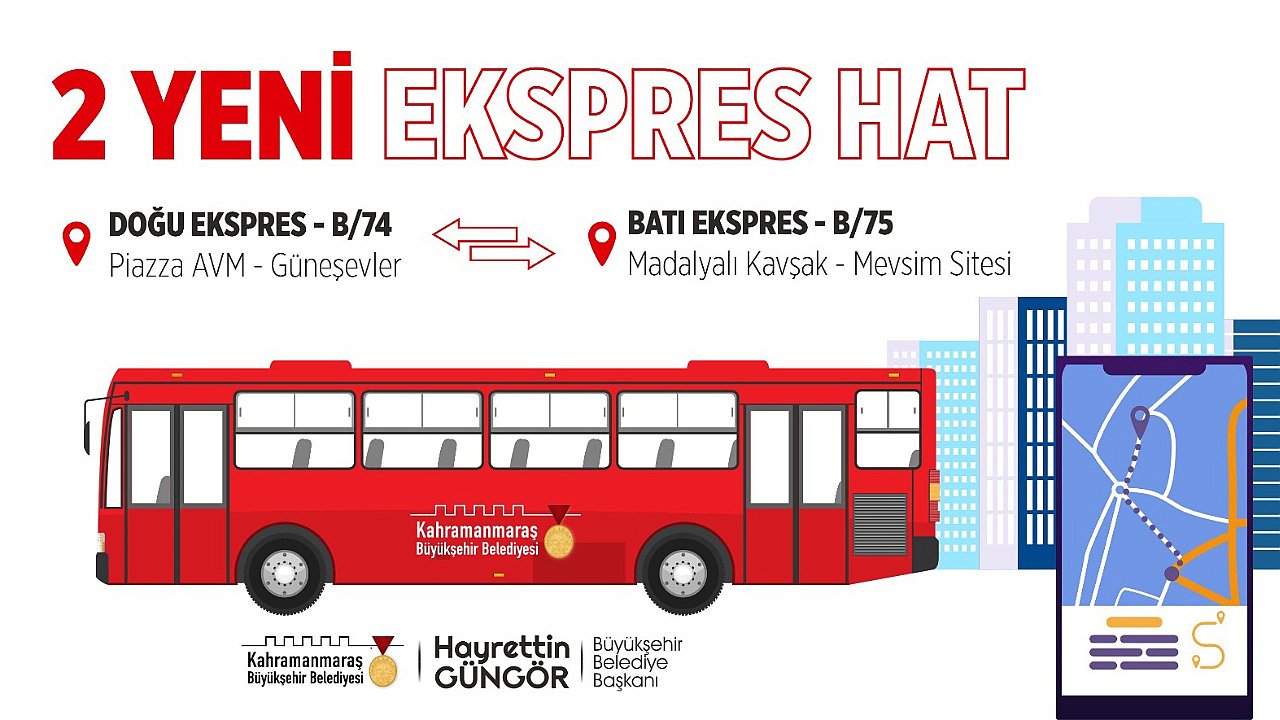 Kahramanmaraş Büyükşehir Belediyesi, vatandaşların toplu taşıma ihtiyaçlarını karşılamak ve ulaşımlarını daha konforlu hale getirmek için şehir içi toplu taşıma ağını geliştirmeye devam ediyor. Bu kapsamda, 9 Mayıs Pazartesi gününden itibaren şehir merkezinden Güneşevler ve Mevsim Sitesi mevkiine ulaşım sağlayan iki yeni hat vatandaşların hizmetine sunulacak. Büyükşehir Belediyesi’nden yapılan açıklamada, “Şehir içi ulaşımda hizmet veren toplu taşıma araçlarının güzergâh ve hareket saatlerine https://kahramanmaras.bel.tr/toplu-tasima-guzergah-ve-saatleriadresi üzerinden ulaşılabiliyor” ifadelerine yer verildi.