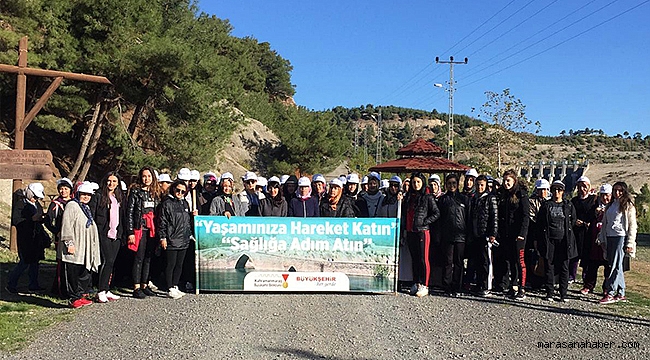 gerçekleştirilen yürüyüş programına katılan kadınlar, Büyükşehir antrenörleri