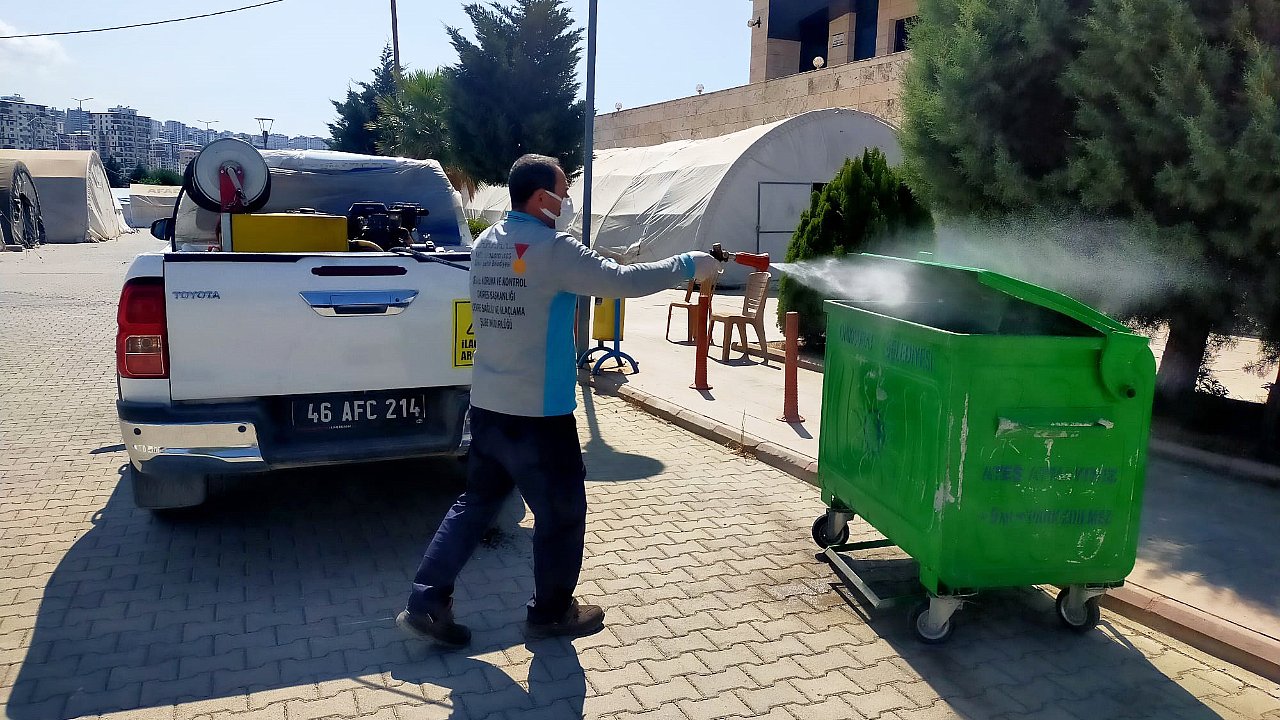 Kahramanmaraş Büyükşehir Belediyesi, meydana gelebilecek olası salgın hastalıkların önüne geçerek halk sağlığını korumak için şehir genelinde temizlik, ilaçlama, dezenfeksiyon ve zararlılarla mücadele çalışmalarını kesintisiz sürdürüyor. Çevre Koruma ve Kontrol Dairesi Başkanlığı’nca 54 araç ve 110 personelle yürütülen çalışmalarla, geçici konaklama merkezleri başta olmak üzere ortak kullanım alanları dezenfekte edilirken bitkiler de haşerelere karşı ilaçlanıyor.