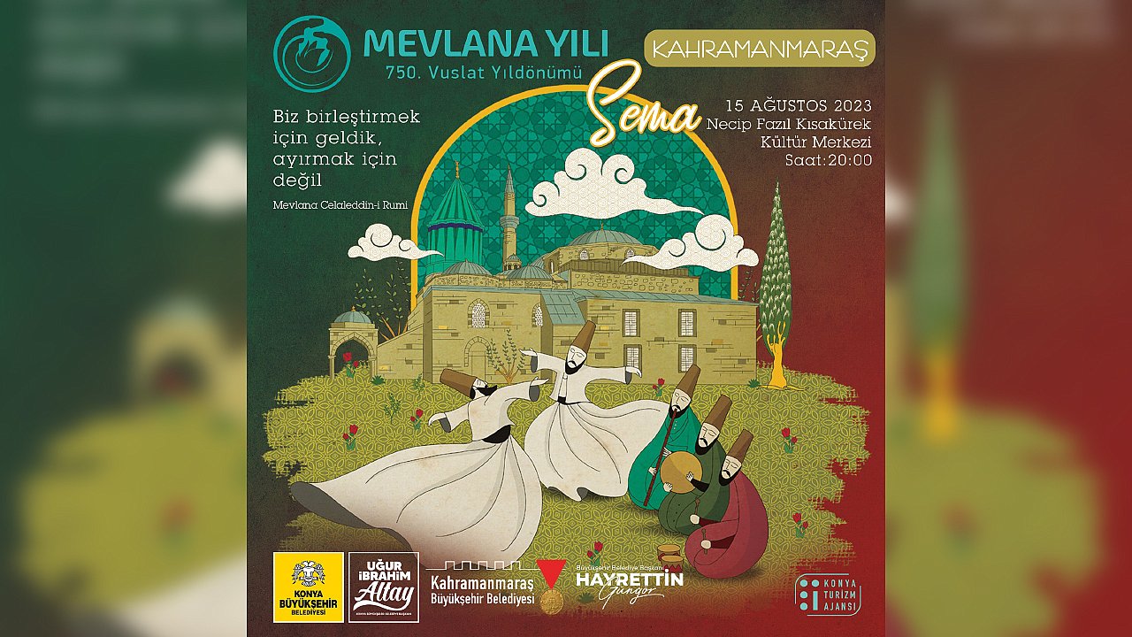 Kahramanmaraş Büyükşehir Belediyesi, bir yandan şehrin tekrar ayağa kaldırılması noktasında saha çalışmalarını hummalı bir şekilde sürdürürken bir yandan da farklı yaş gruplarına yönelik kültür sanat etkinlikleri düzenlemeye devam ediyor. Konya Büyükşehir Belediyesi iş birliğiyle ‘Mevlana Yılı 750. Vuslat Yıl Dönümü’ kapsamında 15 Ağustos Salı günü Türk Tasavvuf Musikisi ve Mevlevi Sema gösterisi düzenlenecek. Necip Fazıl Kısakürek Kültür Merkezi’nde gerçekleştirilecek program, saat 20.00’da başlayacak. Büyükşehir Belediyesi’nden yapılan açıklamada, ücretsiz olarak gerçekleştirilecek etkinliğe tüm vatandaşların davetli olduğu belirtildi.