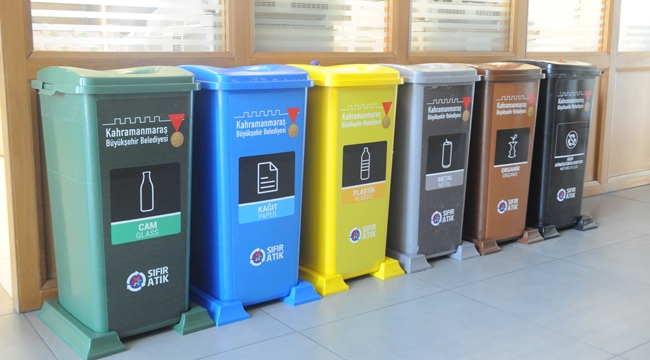 Cumhurbaşkanlığı himayesinde başlatılan sıfır atık projesi kapsamında Kahramanmaraş Büyükşehir Belediyesi, projeye destek vermek ve Kahramanmaraş’ta sıfır atık oluşturmak maksadıyla bir uygulama başlattı.Kahramanmaraş Büyükşehir Belediyesi Sıfır Atık Projesini bünyesine bağlı tüm müdürlüklerde hayata geçirdi!Proje kapsamında kahramanmaraş büyükşehir belediyesi Çevre Koruma ve Kontrol Şube Müdürlüğü tarafından tüm büyükşehir hizmet binalarında uygulanmaya başlandı.Projeye özel geri dönüşüm kutularını yerleştiren ekipler her atık çöp değildir diyerek uygulamaya hızla devam ediyor.Kurumlara dağıtılan özel geri dönüşüm kutuları; Cam, Kağıt, Plastik, Metal, Organik ve Geri Dönüştürülemeyen bölümlerinden oluşan kutuları birimlere dağıtan Kahramanmaraş Büyükşehir Belediyesi burada toplanan atıkları da özel lisanslı firmalara teslim ederek geri dönüşümünü sağlayıp, ülke ekonomisine katkı sağlayacak.Öte yandan Kahramanmaraş Büyükşehir Belediyesi bunun yanı sıra okullarda verilen seminerlerle de projeye katkı sunmaya devam ediyor. Tüm il genelindeki okullarda yapılmakta olan eğitimlerle öğrencilere ve topluma Sıfır Atık projesini tanıtan Kahramanmaraş Büyükşehir Belediyesi tüm insanların sıfır atık konusunda bilgilenmesini, bilinçlenmesini sağlıyor.