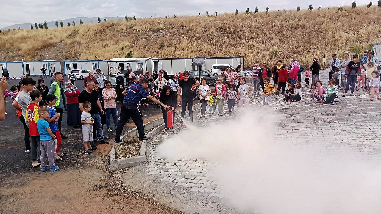 Büyükşehir Depremzedeleri Afetlere Karşı BilinçlendiriyorŞehrin tekrar ayağa kaldırılması noktasında tüm alanlarda çalışmalarını kesintisiz sürdüren Kahramanmaraş Büyükşehir Belediyesi, depremzedelere yönelik faaliyetlerine de devam ediyor. İtfaiye Dairesi Başkanlığı’nca şehir genelinde geçici konaklama merkezlerinde depremzedelerin afetlere karşı bilinçlendirilmesi noktasında eğitim seminerleri ve tatbikatlar düzenleniyor. Uzman ekipler tarafından verilen eğitimlerle vatandaşlar özellikle yangın ve depremlere karşı bilinçlendiriliyor. Ayrıca, meydana gelebilecek olası yangınlara müdahale için geçici barınma merkezlerine yangın söndürme cihazı desteğinde bulunuluyor. İtfaiye Dairesi Başkanlığı’ndan yapılan açıklamada, vatandaşların afetlere karşı bilinçlendirilmesi noktasında eğitim seminerlerinin şehir genelinde kesintisiz devam ettiği belirtildi.