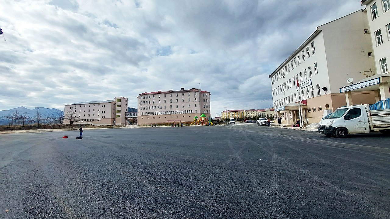 Okul Bahçesi Sıcak Asfaltla Yenilendi
