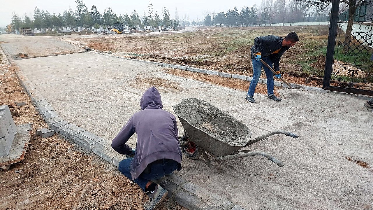 Büyükşehir Belediyesi, Göksun Kerpetenlik Mezarlığı içerisinde ulaşımı sağlayan toprak yolları toplamda 3 bin metrekare kilit parke ve bordürle yeniledi.