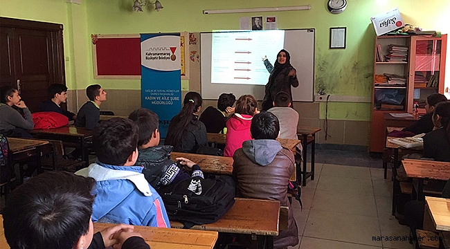 bir taraftan öğrenciler bir taraftan da veliler bilgilendiriliyor. Kahramanmaraş büyükşehir belediyesi Kadın ve Aile Şube Müdürlüğü