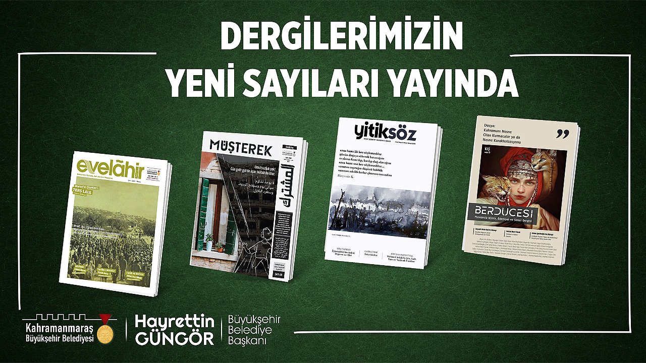 Şehrin tekrar ayağa kaldırılması noktasında altyapıdan ulaşıma, üstyapıdan temizliğe tüm alanlarda çalışmalarını kesintisiz sürdüren Kahramanmaraş Büyükşehir Belediyesi; şehrin kültür envanterini zenginleştirmek, edebi ve sanatsal birikimini artırmak ve kültür sanat etkinliklerine derinlik kazandırmak için Kültür Yayınları’nı edebiyatseverlerle buluşturmaya devam ediyor. Sanat, edebiyat ve düşünce dergisi olan Yitiksöz, mevsimlik olarak yayımlanan Berdücesi, kültür sanat dergisi Evelahir, Türkçe ve Arapça olarak yayımlanan Müşterek dergilerinin yeni sayıları yayımlandı. Birbirinden usta kalemlerin eserlerinin yer aldığı dergilerde, asrın felaketine ilişkin kaleme alınmış yazılar da bulunuyor. Kültür Yayınları’nın aktüel ve geçmiş sayılarına https://kahramanmaras.bel.tr/e-dergi ve https://www.marastaedebiyat.com internet adresleri üzerinden e-dergi formatında ulaşılabiliyor.