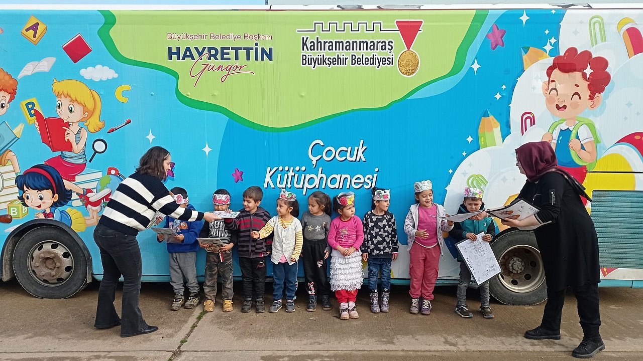 Sosyal belediyecilik çerçevesinde daima vatandaşların yanında olan Kahramanmaraş Büyükşehir Belediyesinin örnek projesi Mobil Çocuk Kütüphanesi, şehrin çeşitli noktalarında öğrencilerle buluşmayı sürdürüyor.