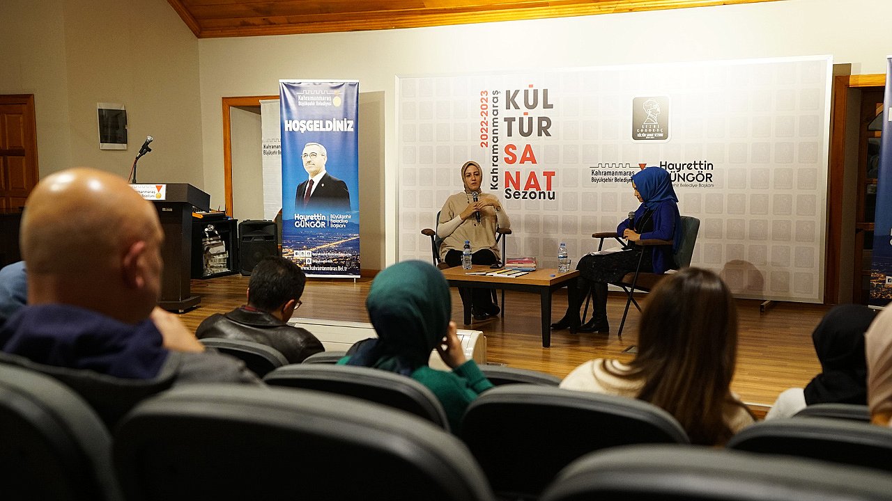 Sezai Karakoç Kültür Sanat Sezonu kapsamında çeşitli etkinlikleri vatandaşlarla buluşturmayı sürdüren Kahramanmaraş Büyükşehir Belediyesi, ‘Öykü Gerçeğin Yerini Tutar Mı?’ konulu söyleşi etkinliği düzenledi. Yedi Güzel Adam Edebiyat Müzesi’nde Yazar Naime Erkovan’ın katılımıyla gerçekleştirilen söyleşiyi edebiyatseverler büyük bir ilgiyle takip etti. Berdücesi Dergisi Editörü Bilge Doğan moderatörlüğünde gerçekleştirilen etkinlikte; Kültür Yayınları’ndan Berdücesi Dergisi’nin yanı sıra öykünün geçmişi, bugünü ve geleceği konuşuldu. Yazar Erkovan, edebiyatseverlerden gelen soruları da büyük bir samimiyetle yanıtladı. Düzenlenen kültür sanat etkinliklerinden duyduğu memnuniyeti belirten katılımcılar, Büyükşehir Belediyesi’ne teşekkür etti.