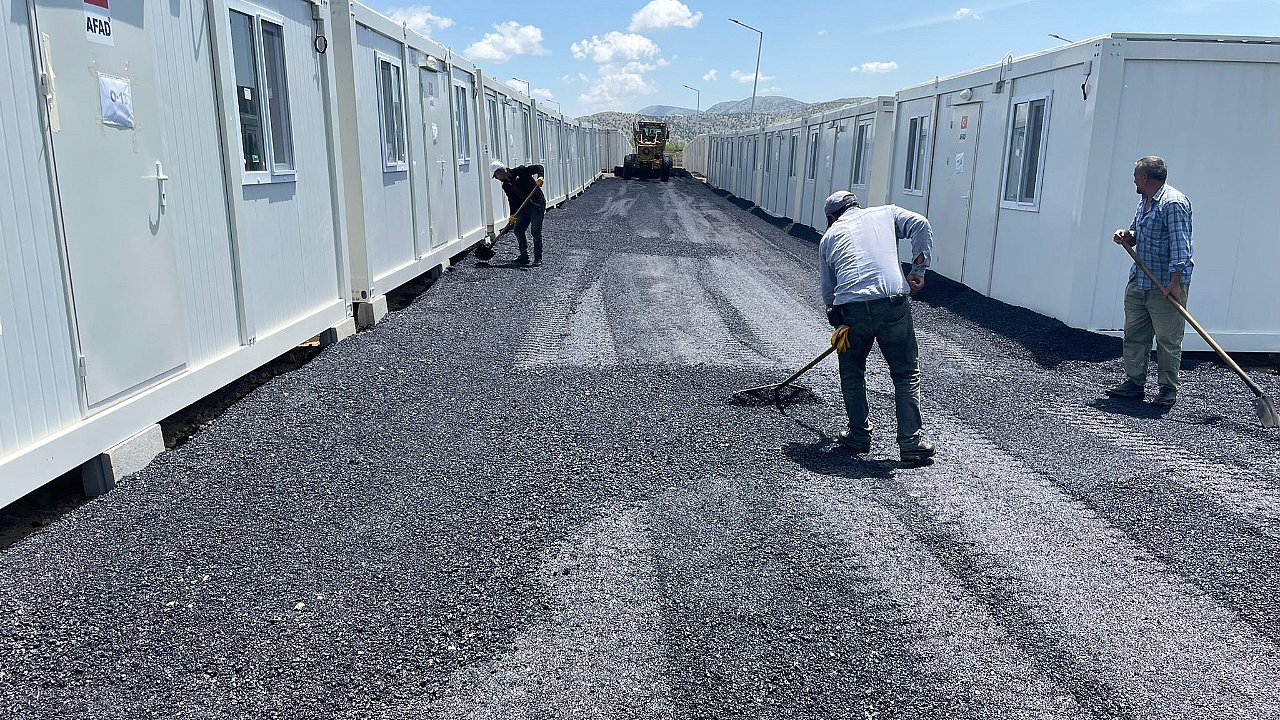Altyapı ve zemin hazırlıkları tamamlanan geçici barınma merkezinde asfalt imalatına başlandı. Yoğun bir şekilde sürdürülen çalışmalarla bölgeye toplamda 15 bin metrekare sıcak asfalt kazandırılacak. Üstyapı imalatlarının kısa süre içerisinde tamamlanmasıyla Nurhak Konteyner Kent depremzedelerin hizmetine sunulacak.