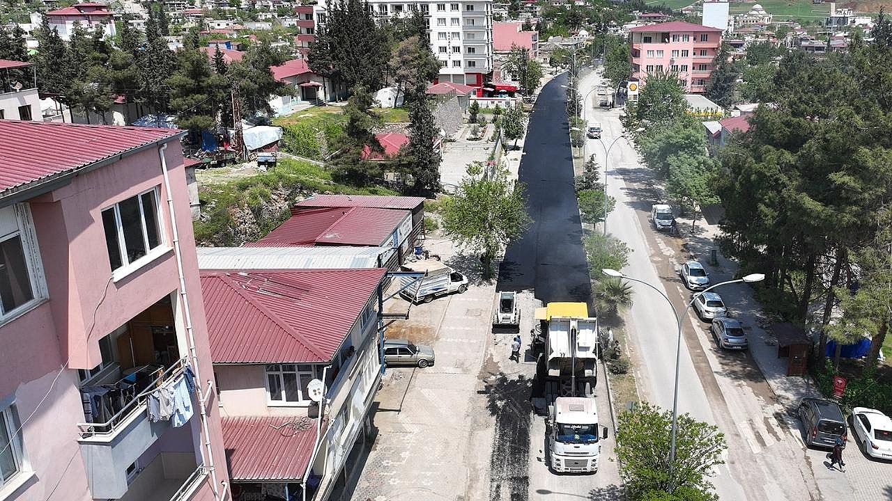 Büyükşehir Belediyesi, Türkoğlu’nun en işlek arterlerinden 2 kilometre uzunluğunda ve 16 metre genişliğinde İstiklal Caddesi’ni sıcak asfaltla baştan uca yeniliyor.