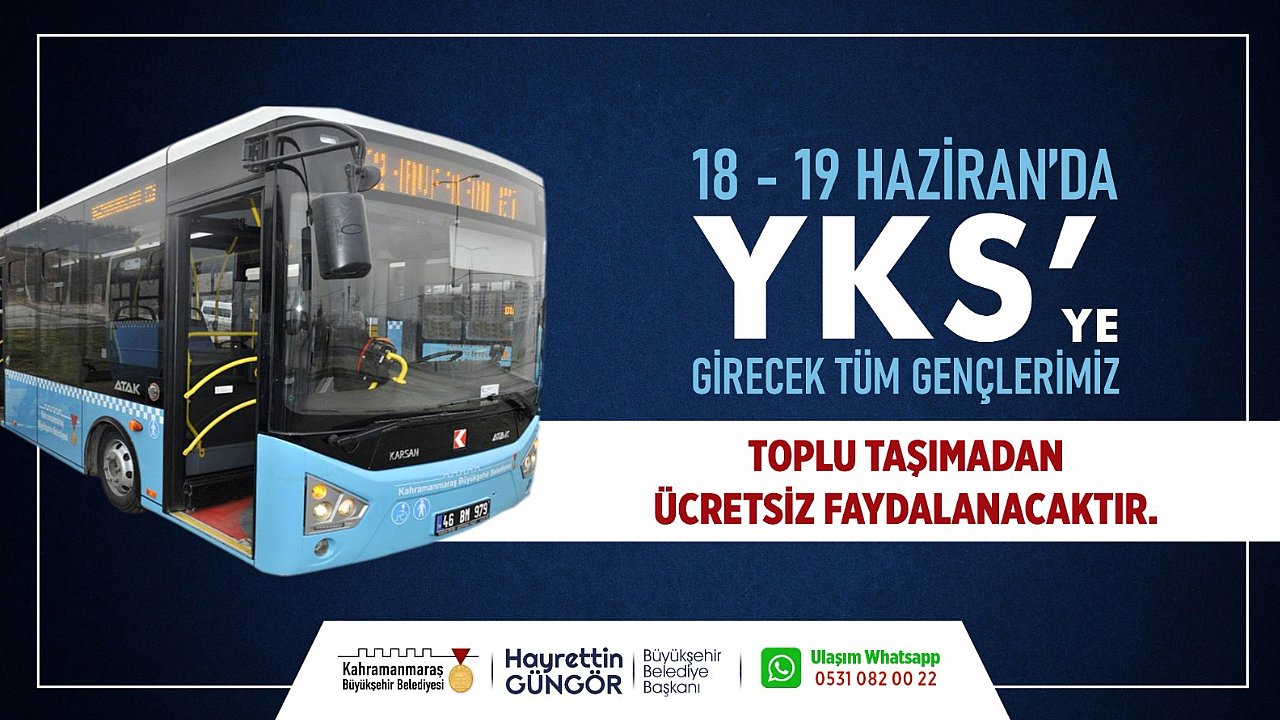 Gerçekleştirilen uygulamayı sosyal medya hesabından duyuran Büyükşehir Belediye Başkanı Hayrettin Güngör, “Sadece sınava odaklanmanız için biz tüm otobüsleri ücretsiz yaptık. Çalışmalarınızın neticesini sınavda başarıyla göstereceğinizden şüphem yok. Tüm yavrularımıza kolaylık diliyorum” ifadelerini kullandı. Kahramanmaraş Büyükşehir Belediyesi, haftasonu öğrenciler için uygulanacak ücretsiz biniş uygulamasının yanı sıra tüm araçlarıyla seferde olacak. Öğrencilerin sınav yerlerine ulaşımda herhangi bir aksama yaşamaması için toplu taşıma araçlarının sefer sayısının da artırıldığı belirtildi.