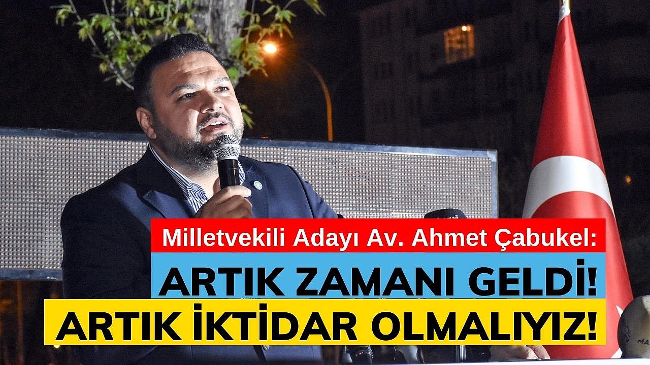 Çabukel, “Bugün artık çığ gibi büyüyen partimiz, iktidara hazır. Artık partimiz, ülkemizi yönetmeye hazır. El ele vermiş, kol kola vermiş, kenetlemiş partimiz, ülkemize hukuk devletini getirmeye hazır. Artık zamanı geldi. Artık iktidar olmalıyız” dedi.