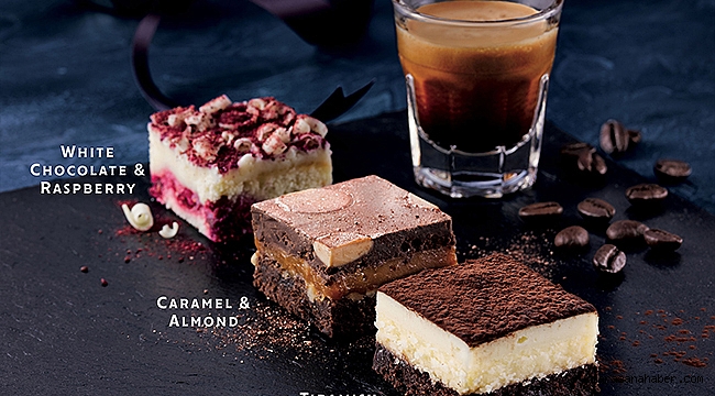 yeni mini tatları White Chocolate & Raspberry, Caramel & Almond ve tiramisu ile kahve tutkunları, beyaz çikolata, ahududu, karamel, badem ve