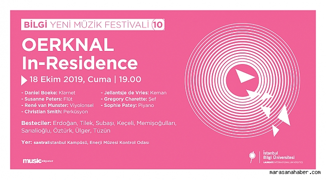 İstanbul Bilgi Üniversitesi tarafından düzenlenen “BİLGİ Yeni Müzik Festivali” devam ediyor. Genç bestecileri uluslararası müzik topluluklarıyla buluşturmayı hedefleyen festival, 18 Ekim’de santralistanbul Kampüsü’nde müzikseverler için kapılarını aralayacak.Türkiye müzik piyasasına önemli isimler kazandıran İstanbul bilgi Üniversitesi Müzik Bölümü, 18 Ekim Cuma akşamı, bu yıl onuncusu düzenlenen BİLGİ Yeni Müzik Festivali’nde müzikseverleri bir araya getirecek. Sekiz genç bestecinin festival için özel hazırladığı eserlerinin ilk kez seslendirileceği etkinliğe, Amsterdam merkezli uluslararası yeni müzik topluluğu oerknal ensemble katılacak. İstanbul Bilgi Üniversitesi Müzik Bölüm Başkanı Prof. Dr. Tolga Tüzün’den ve kendi repertuarlarından eserler icra edecek grup, müzikseverlere unutulmaz bir deneyim yaşatacak.OERKNAL Ensemble genç ve dinamik bir grup olarak öne çıkıyor. Grup bünyesinde yer alan isimlerden Daniel Boeke klarnet, Susanne Peters flüt, René van Munster viyolonsel, Christian Smith perküsyon, Jellantsje de Vries keman, Sophie Patey piyanoda performans sergiliyor. Grubun şefliğini ise Gregory Charette üstleniyor.Tarih: 18 Ekim 2019, CumaSaat: 19.00Yer: İstanbul Bilgi Üniversitesi santralistanbul Kampüsü, Enerji Müzesi Kontrol Odası
