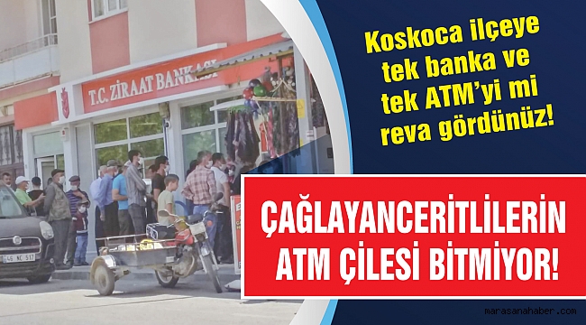 Çağlayanceritli vatandaşlar bütün bankacılık işlemlerini, ilçede tek banka olan Ziraat Bankası’ndan ve yine tek bankamatikten yürütüyor. Banka ve ATM sayısı yetersiz olunca da uzun sıra kuyrukları oluşuyor. Saatlerce bankamatik kuyruğunda beklemek hem insanlar için çileye dönüşüyor hem de sosyal mesafenin önem kazandığı Koronavirüs döneminde salgın riskini artırıyor.Zorlu ve olumsuz hava şartlarında, ilçe halkının bankamatik kuyruğunda beklemesinin önüne geçmek amacıyla İstiklal Mahallesi Muhtarı Salman Dolgun öncülüğünde ikinci bir bankamatiğin hizmete sunulması için 5 bin imza toplanarak Ocak ayında ilgili kuruma başvuru yapıldı. Ancak herhangi bir gelişme yaşanmaması üzerine ilçe halkı bu sefer 23 bin imza toplamak için yeniden harekete geçti.Çağlayanceritliler, yakın zamanda Ziraat Bankası’nın iki numarasına getirilen Kahramanmaraşlı eski Başbakan Yardımcısı Veysi Kaynak’ın bu taleplerine duyarsız kalmayacağını düşünüyor.