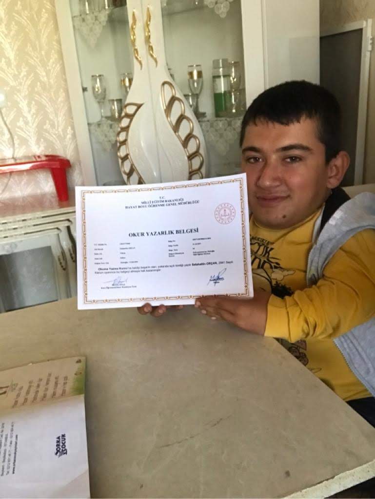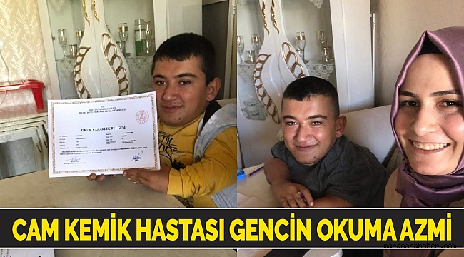 Kahramanmaraş’ın Türkoğlu ilçesinde yaşayan yirmi yaşındaki cam kemik hastası genç evde eğitimle okuma yazmayı öğrendi.Türkoğlu ilçesine bağlı Beyoğlu Mahallesinde yaşayan yirmi yaşındaki cam kemik hastası selahattin orçan hastalığı nedeniyle okula gidememiş. Okuma yazma öğrenmek isteyen cam kemik hastası genç bu isteğini Türkoğlu Belediye Başkanı Osman Okumuş’a ileterek destek istedi. Osman Okumuş’un desteği ve yönlendirmesiyle Türkoğlu Halk Eğitim Merkezi aracılığıyla evde eğitim görerek yirmi yaşında okuma yazma öğrendi.Üniversite Okumak İstiyorBeyoğlu Mahallesinde ailesiyle birlikte yaşayan yirmi yaşındaki cam kemik hastası Selahattin Orçan okuma yazma öğrendiğini ayrıca sosyal medyayı aktif bir şekilde kullandığını ve bundan sonraki süreçte eğitimine devam ederek üniversite okumak istediğini dile getiriyor.Cam Kemik Hastasından TeşekkürOkuma yazma öğrenmenin sevincini yaşayan Selahattin Orçan kendisine destek destekleri için Türkoğlu belediye başkanı Osman Okumuş’a, Türkoğlu Kaymakamı Gürbüz Saltaş, AK Parti Türkoğlu ilçe başkanı Veli Ünlü, Türkoğlu halk eğitim müdürü Mehmet Kıllı ile Türkoğlu Eğitim Müdürü Adem Aydoğan ve özellikle okuma yazmayı öğreten Betül Ünal Hanıma çok çok teşekkür ediyor.