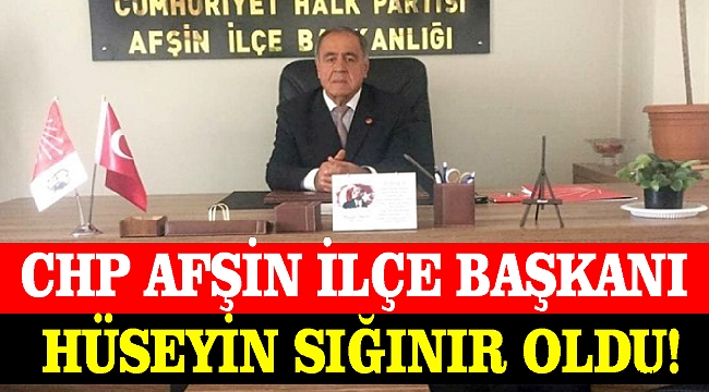 Cumhuriyet Halk Partisi (CHP) Afşin İlçe Başkanı Mahsuni Çinpolat’ın mesleki yer değişikliği nedeniyle ayrıldığı İlçe Başkanlığı Koltuğu’na Hüseyin Sığınır oturdu.CHP Afşin İlçe Yönetim Kurulu Üyelerinin oy birliği ile verdiği karar neticesinde yeni İlçe Başkanı olan Hüseyin Sığınır, sosyal medya hesabından yaptığı paylaşımla, Afşin halkından partisine destek istedi.CHP Afşin ilçe Başkanı Hüseyin Sığınır’ın sosyal medya paylaşımı şöyle:“Cumhuriyet Halk Partisi Afşin İlçe Başkanlığında Sayın Mahsuni Çinpolat'ın mesleki anlamda yer değiştirmesi gerekmiş ve kendisi başkanlıktan zorunlu nedenlerle ayrılmıştır. Sayın Yönetim Kurulumuz bu göreve beni layık görerek oybirliği ile şahsımı başkanlığa getirmiştir. Yeni dönemde CHP'nin ilçemizdeki hak mücadelesi ve siyasi uğraşıları devam edecektir. Afşin'in ve Afşin halkının milli kazanımlardan yararlandırılması ve modern imkânlardan yararlandırılması için elimizden geleni yapacağız. Türkiye'deki büyük değişimi Afşin'de yaşatacağız. Her insanın ayrımcılığa uğramadan yaşamını sürdürmesi ve ekonomik olarak iyileştirilmesi için gerekeni yapacağız. Afşin insanı siyasi iktidarın inisiyatifine bırakılamaz. Bu mücadelede tüm halkımızı partimize destek olmaya çağırıyoruz.”