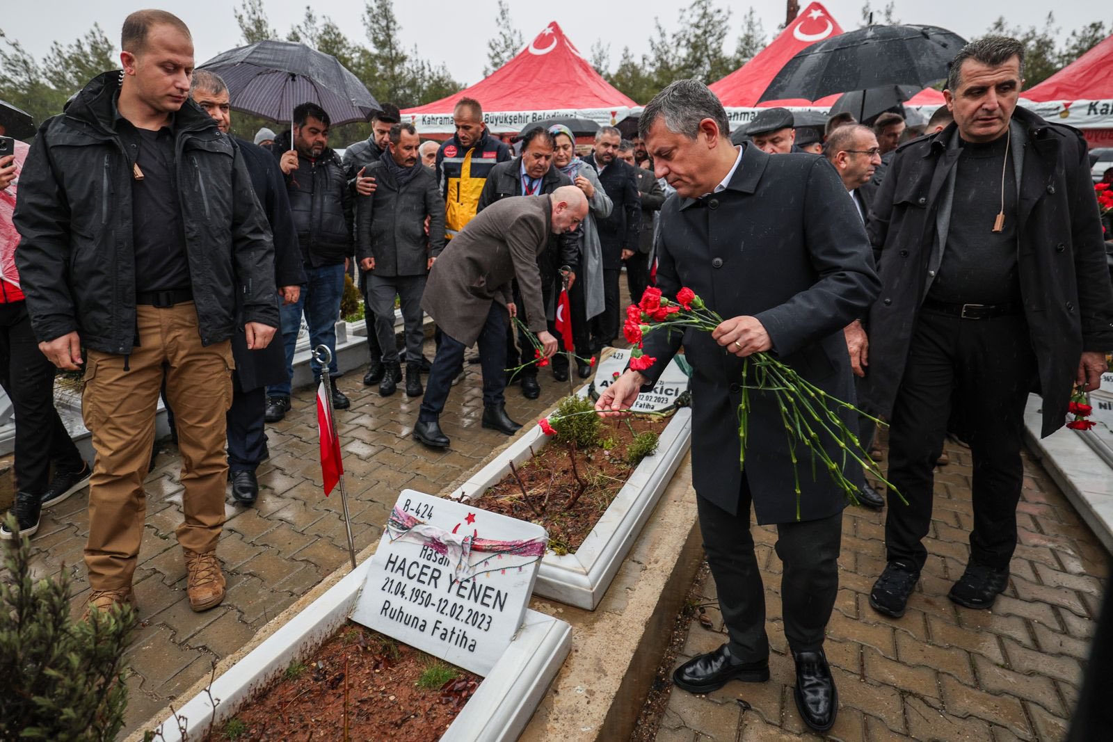 Milletvekilleri ile Ankara Büyükşehir Belediye Başkanı Mansur Yavaş’ın da eşlik ettiği CHP Genel Başkanı Özgür Özel, ilk olarak Kapıçam Şehir Mezarlığı’na geçti.
