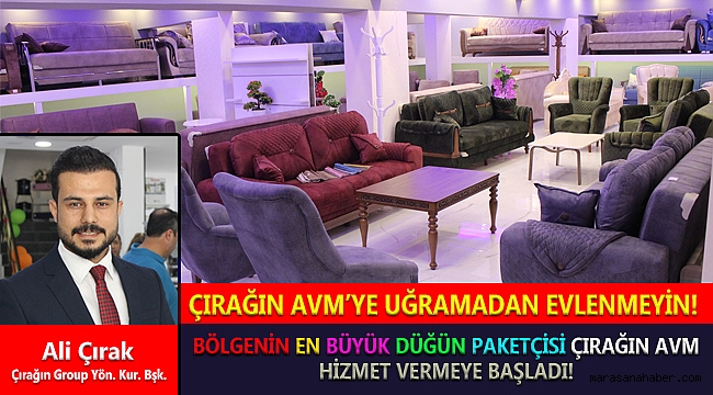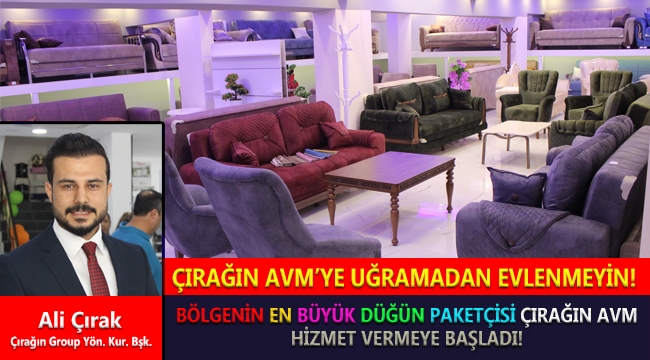 Kahramanmaraş’ta inşaat sektörünün başarılı firmalarından Çırağın İnşaat’ın yeni yatırımı bölgenin en büyük düğün paketçisi Çırağın AVM, Kahramanmaraşlılara hizmet vermeye başladı. Evlenmeyi düşünen yeni çiftler, kaliteyi uygun fiyata almak için nikâh dairesinden önce Çırağın AVM’ye mutlaka uğramalı!