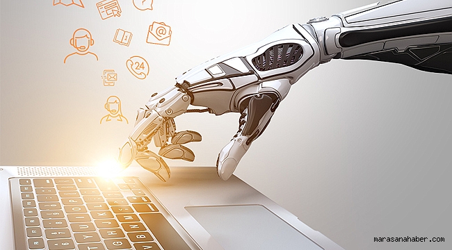 ekranında cevaplayıp bilgileri kayıt altına alırken, arkada robot yazılım, bu