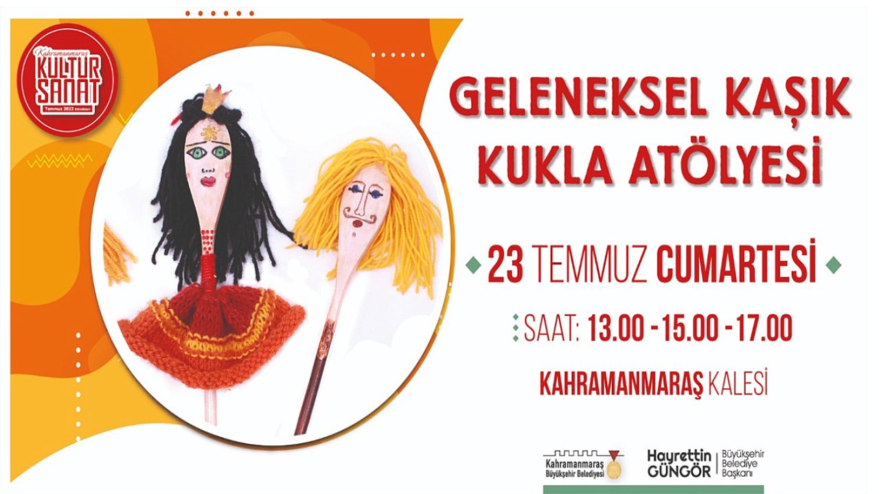 Şehirde farklı yaş gruplarına yönelik çeşitli sosyal etkinlikler gerçekleştiren Kahramanmaraş Büyükşehir Belediyesi, 23 Temmuz Cumartesi günü ‘Geleneksel Kaşık Kukla Atölyesi’ni çocuklarla buluşturacak. Tarihi Maraş Kalesi’nde gerçekleştirilecek etkinlik saat 13.00 – 15.00 ve 17.00 olmak üzere üç seans şeklinde çocuklarla bir araya gelecek. 4 – 12 yaş aralığındaki çocukların katılımıyla gerçekleştirilecek ‘Geleneksel Kaşık Kukla Atölyesi’ etkinliğine https://kahramanmaras.bel.tr/duyuru/2022/06/21/etkinlik-atolyesi-basvuru-formu internet adresi üzerinden başvuru yapılabiliyor. Kültür Spor ve Turizm Dairesi Başkanlığı’ndan yapılan açıklamada, ücretsiz olarak gerçekleştirilecek etkinliğe tüm çocukların davetli olduğu belirtildi.